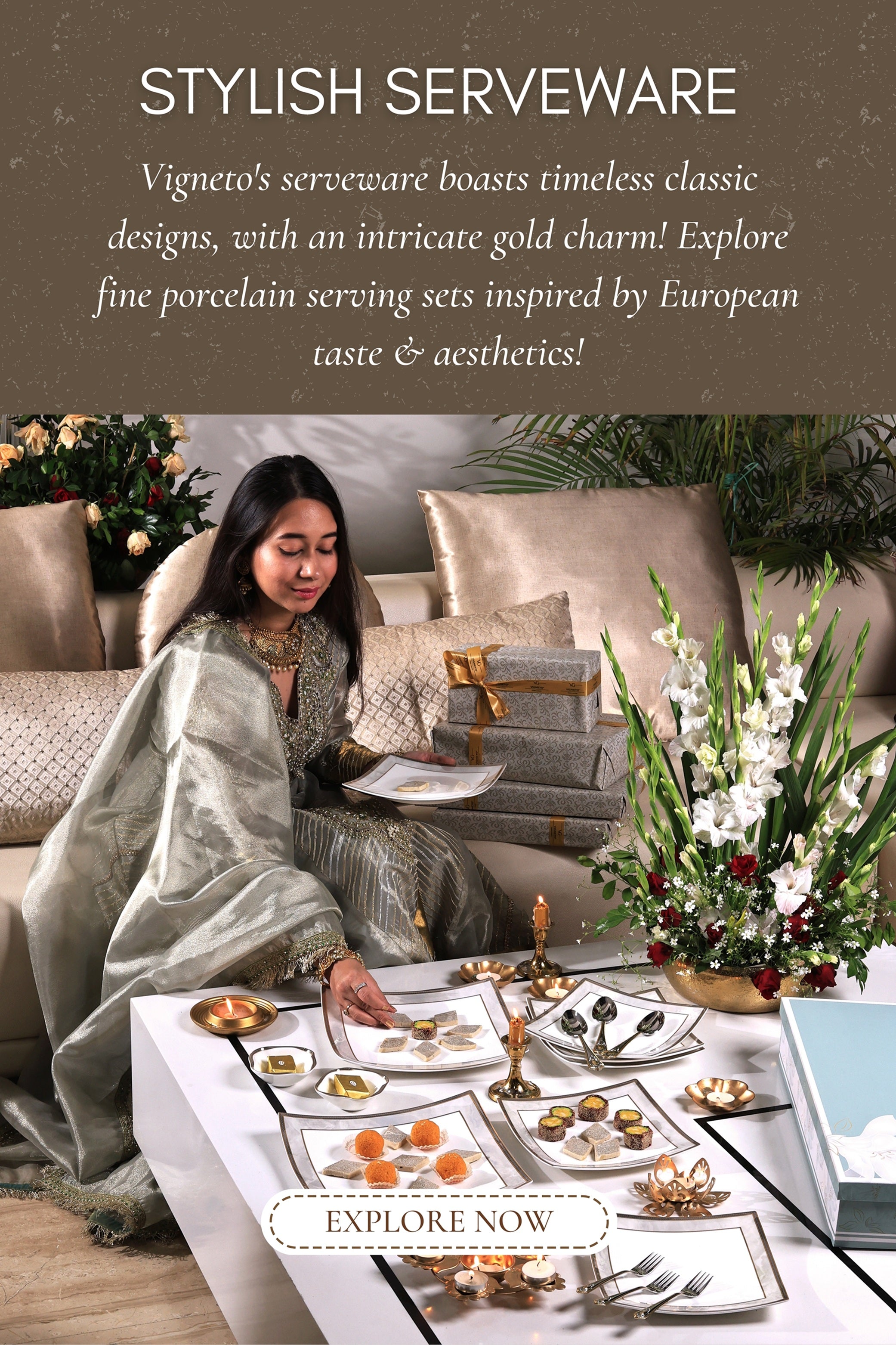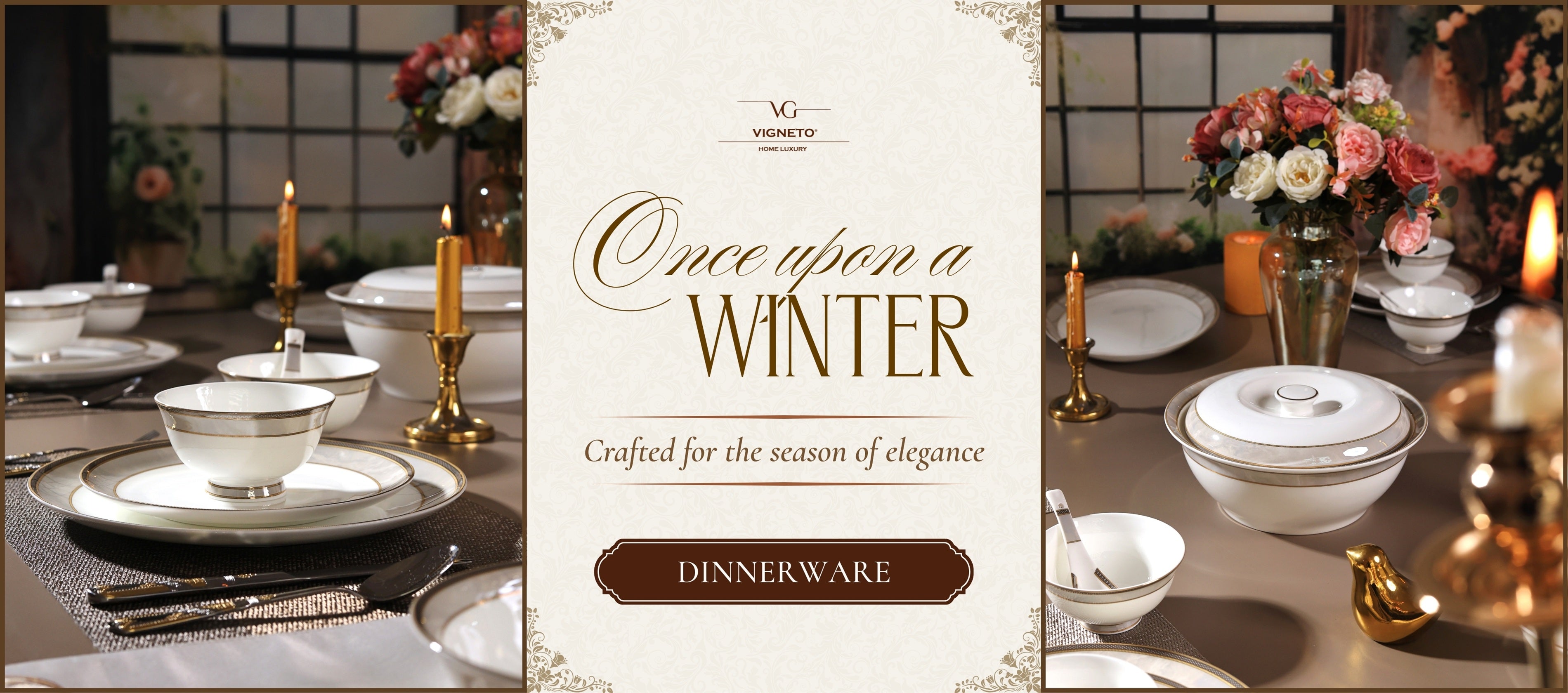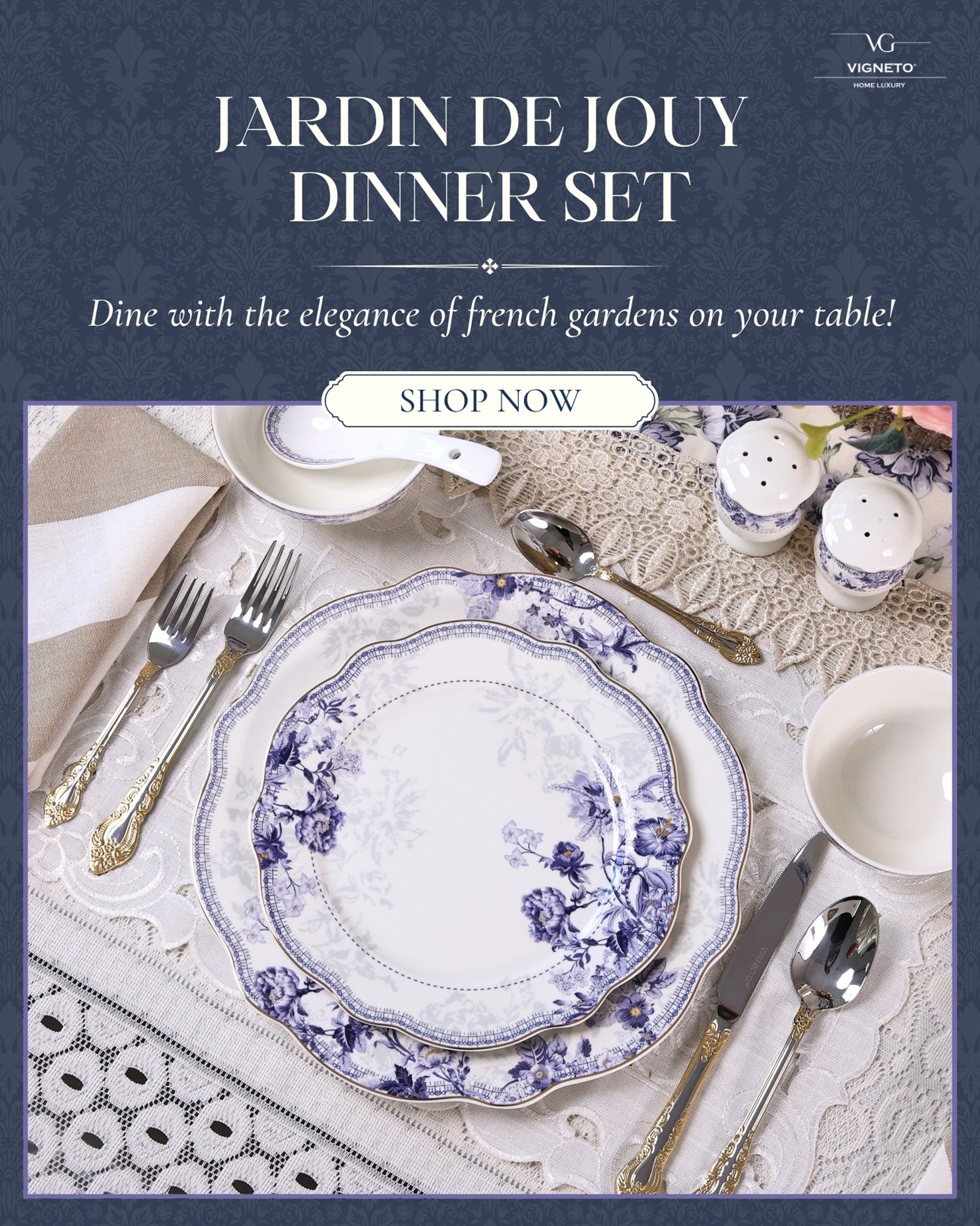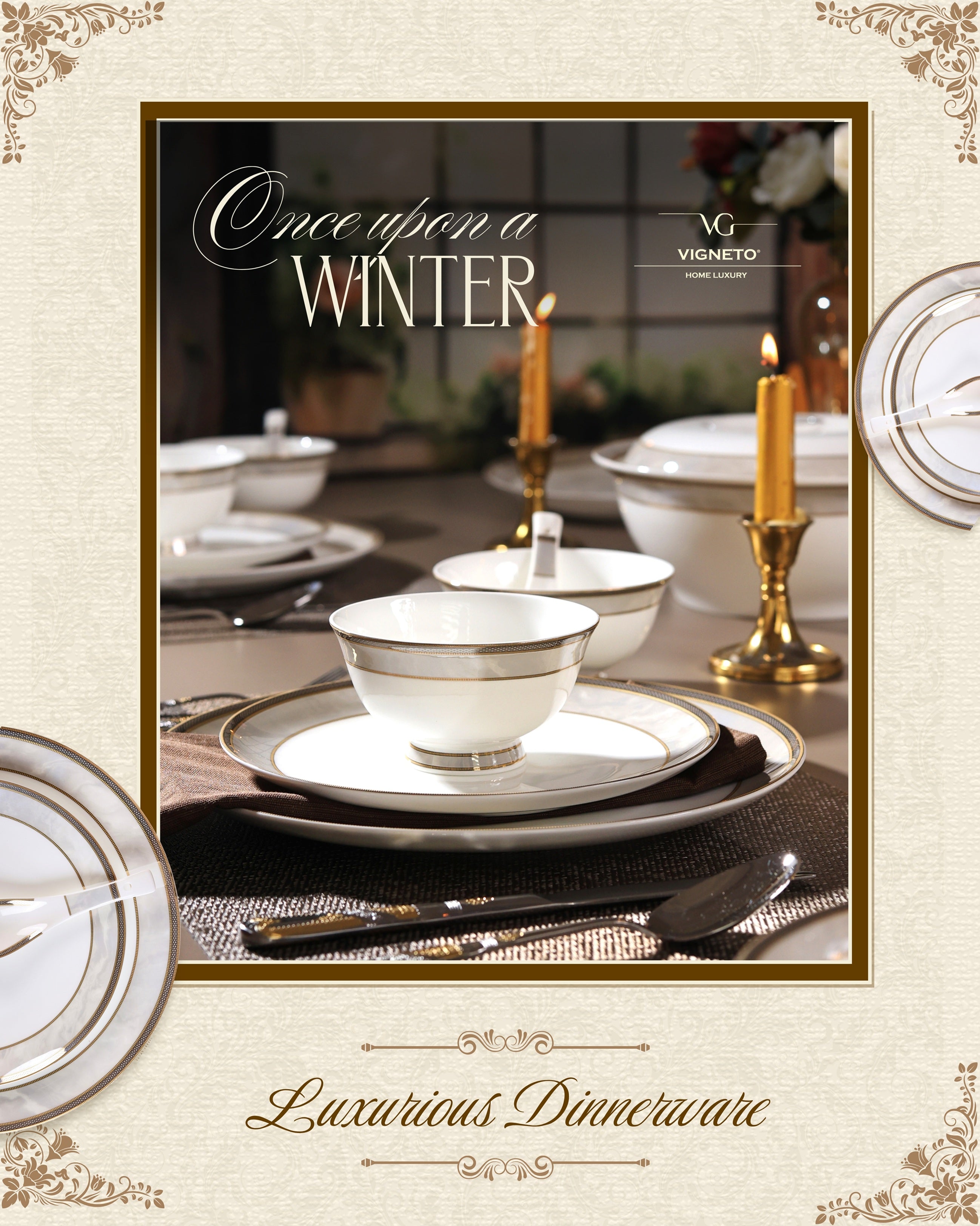 Elevate your dining experience with luxurious dinner sets, crafted from finest porcelain, accented with gold and embossed with intricate patterns!