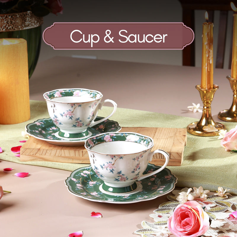 Pistachio Green Cup and Saucer Set (Vintage Collection, 6 Cups and 6 Saucers)