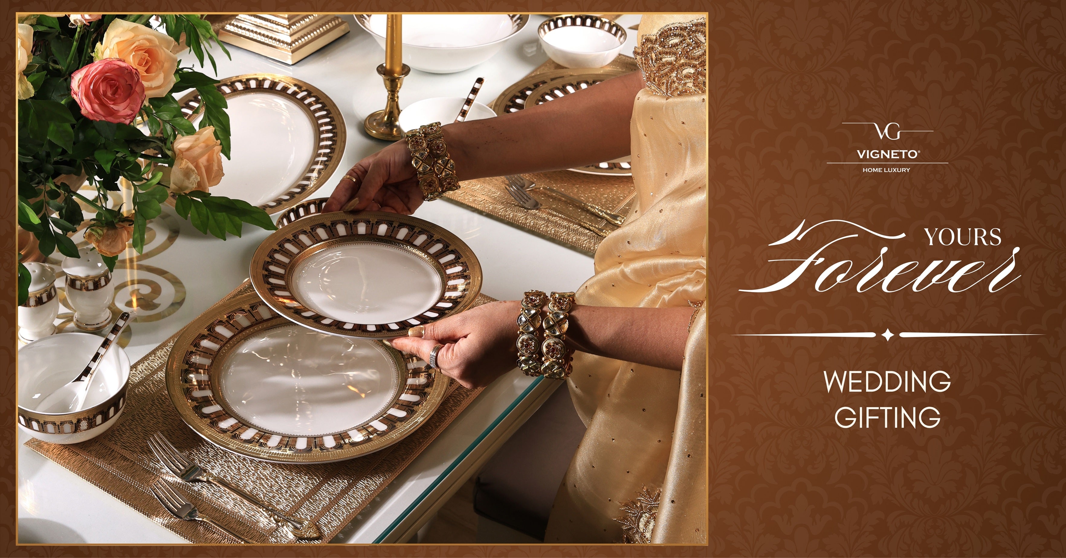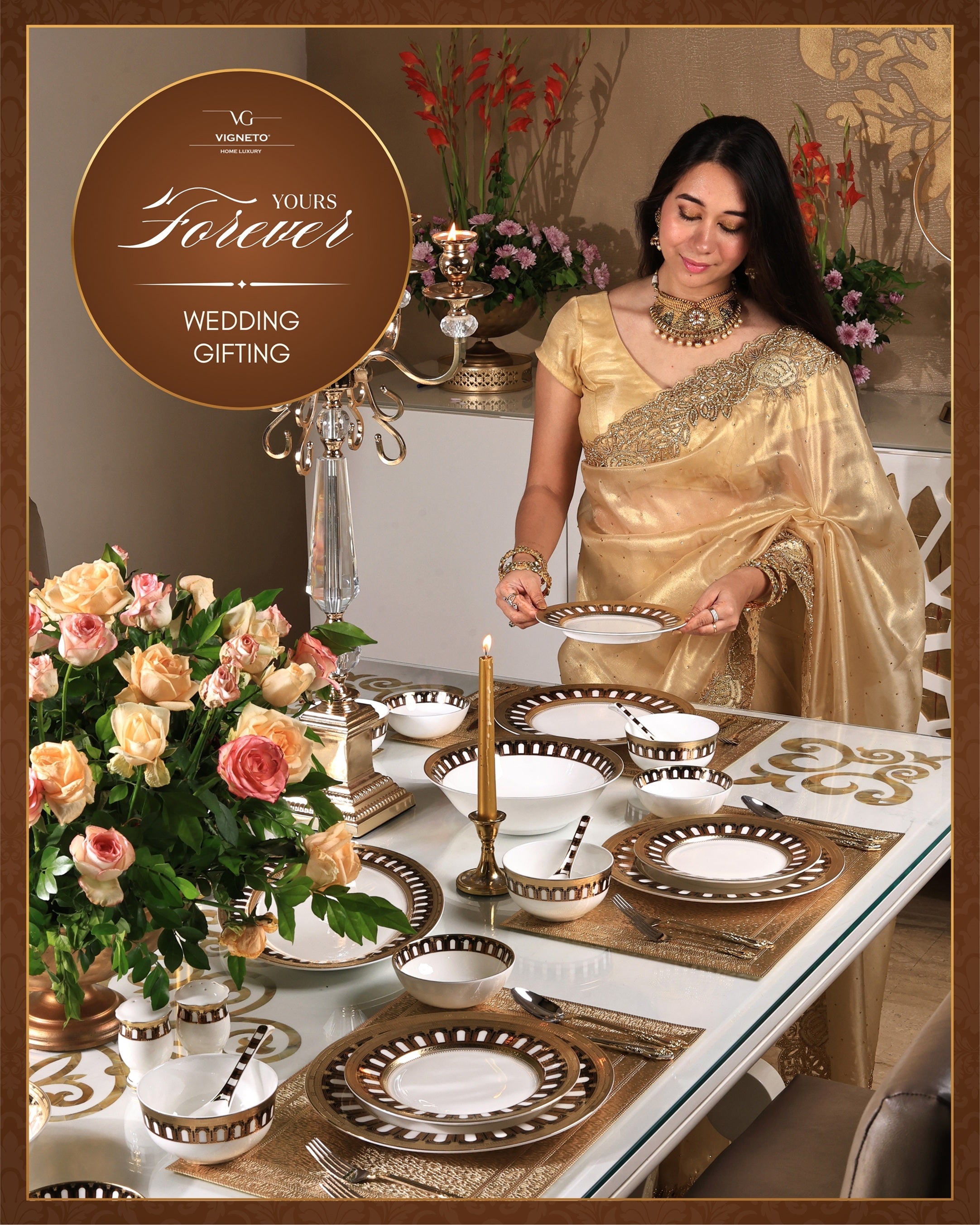 Vigneto's serveware speaks of a timeless classic tale, beautified with an intricate gold charm! Explore fine porcelain serving sets inspired by European taste and aesthetics!