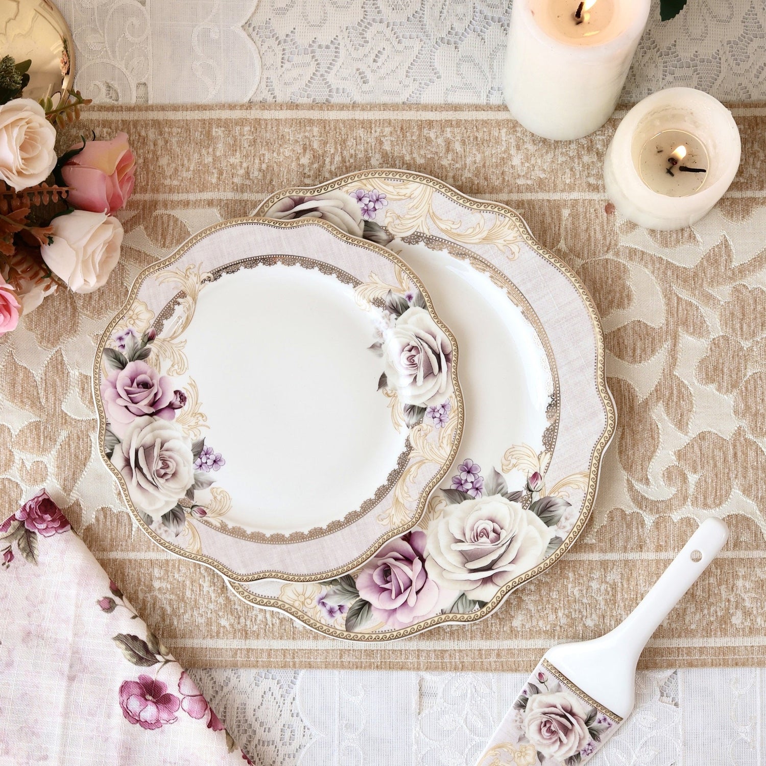 Rose Garden 8 Pcs Snack Set (1 Serving Plate, 6 Quarter Plates, 1 Server)
