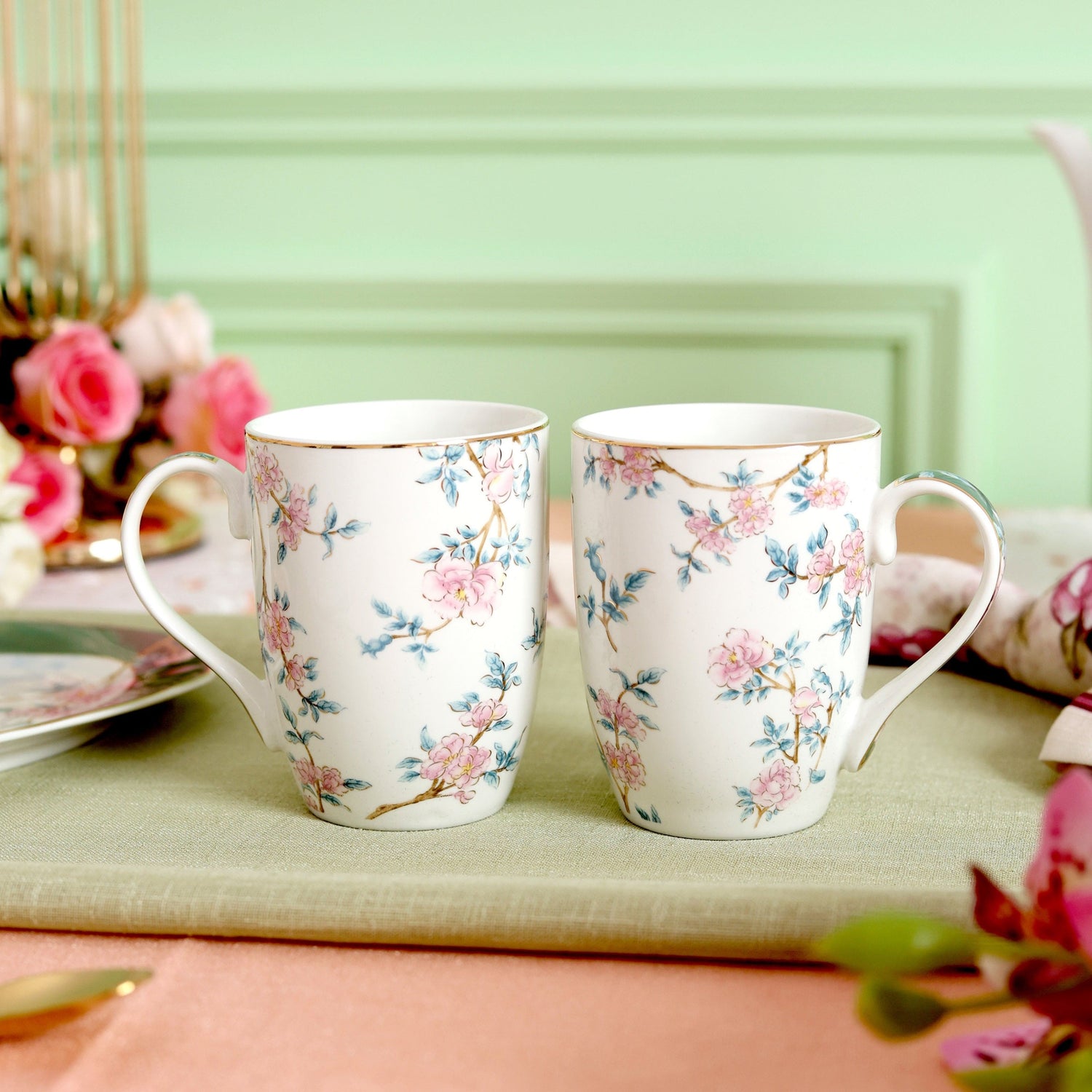 White Pattern Coffee Mugs (Set of 2, 300 ML)