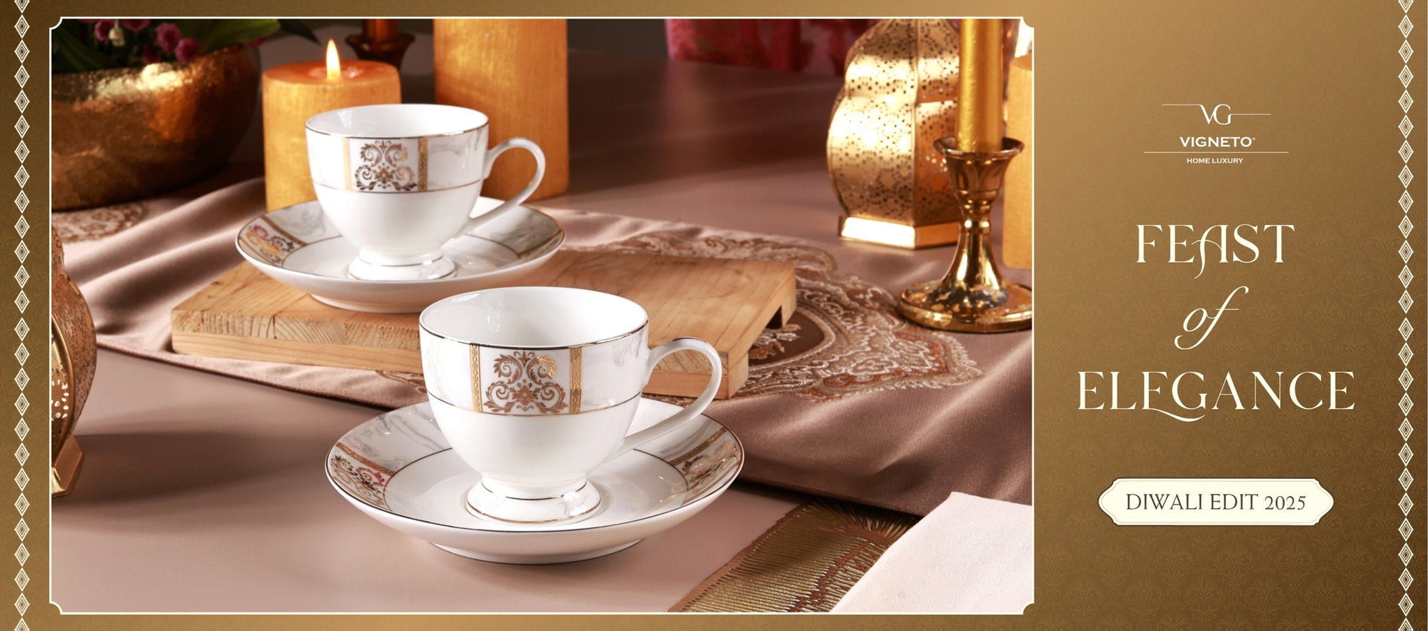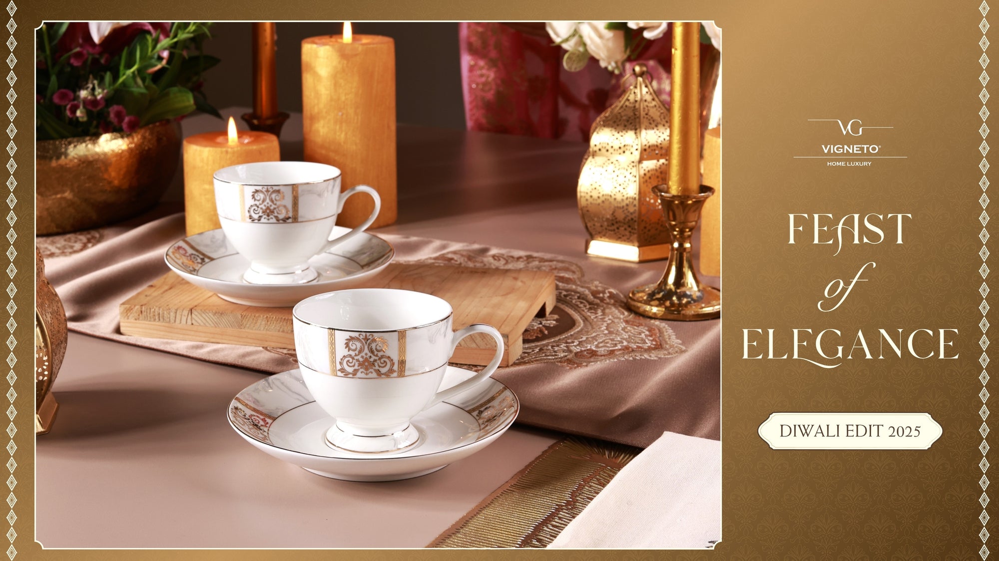 Mughal Gold and Grey Cup and Saucer Set (6 Cups and 6 Saucers)