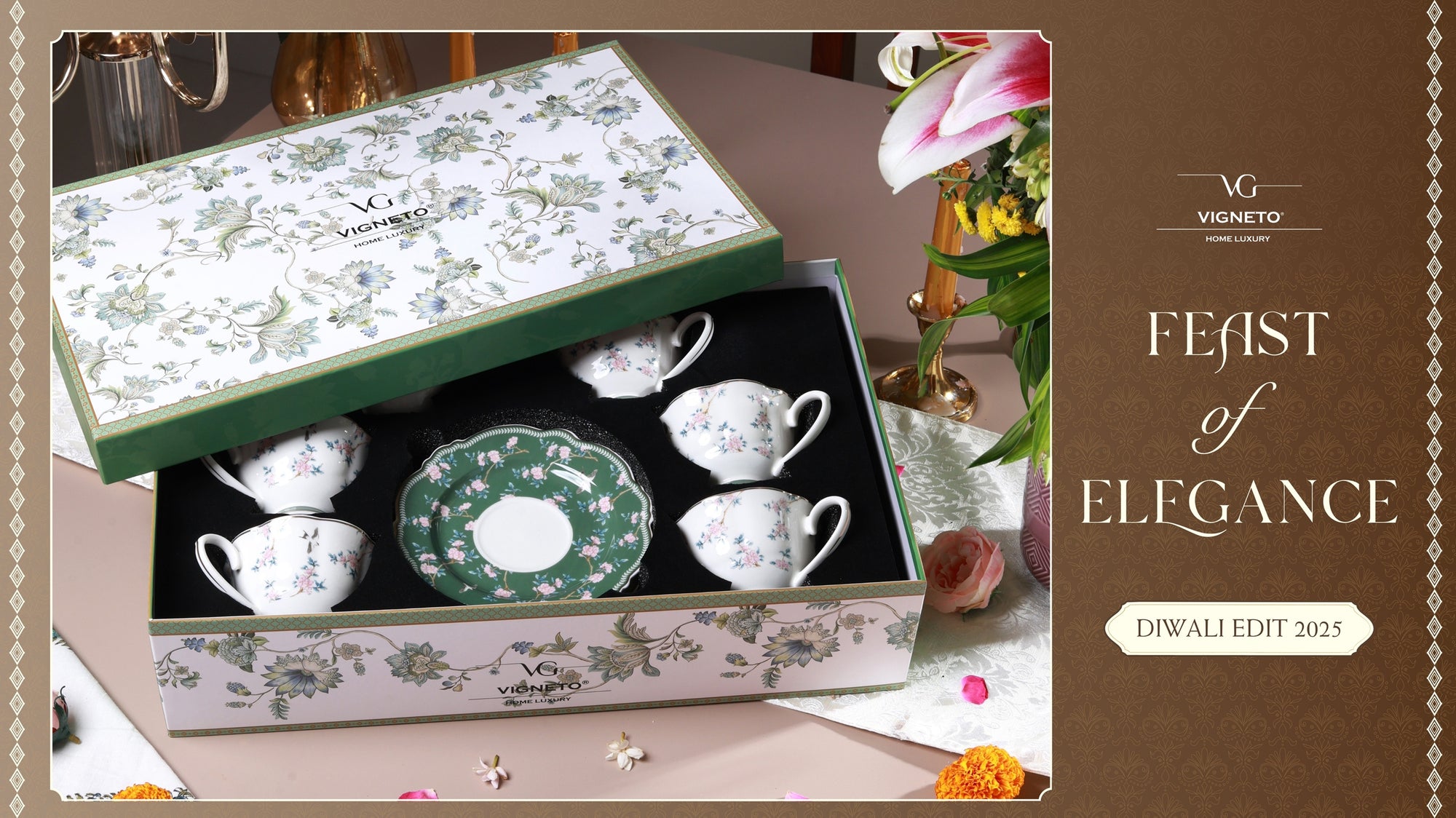 Flower Bed Cup and Saucer Set (Vintage Collection, 6 Cups and 6 Saucers)