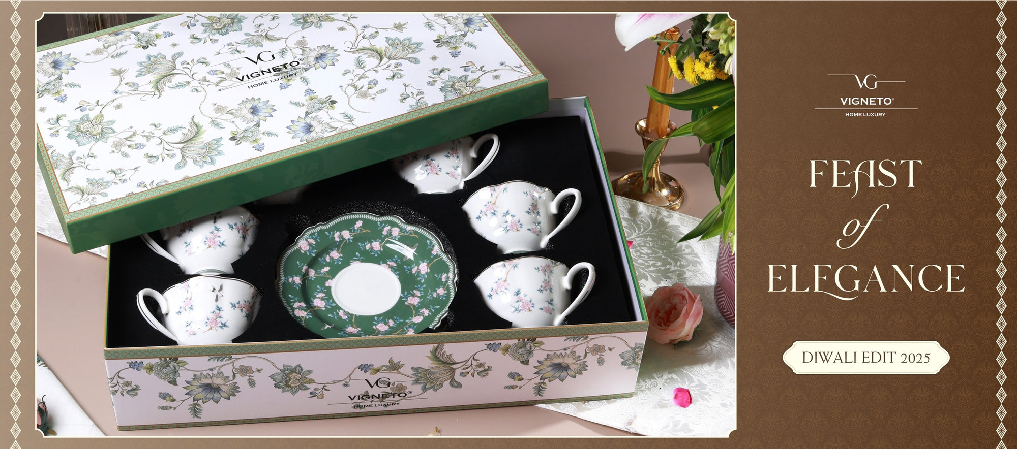 Rose Garden Cup and Saucer Set (Vintage Collection, 6 Cups and 6 Saucers)