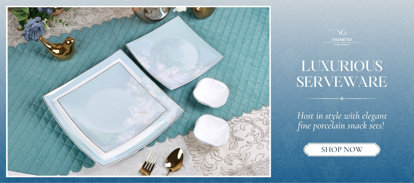 Victorian Green 8 Pcs Snack Set (1 Serving Plate, 6 Quarter Plates, 1 Server)