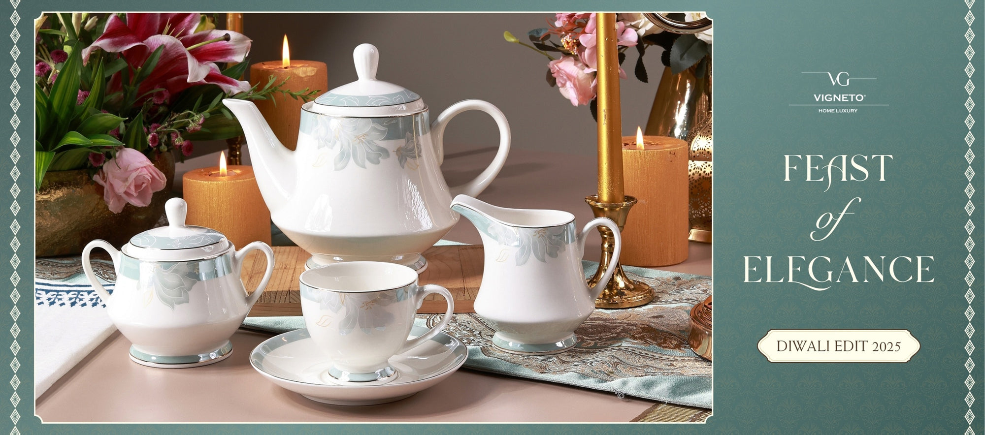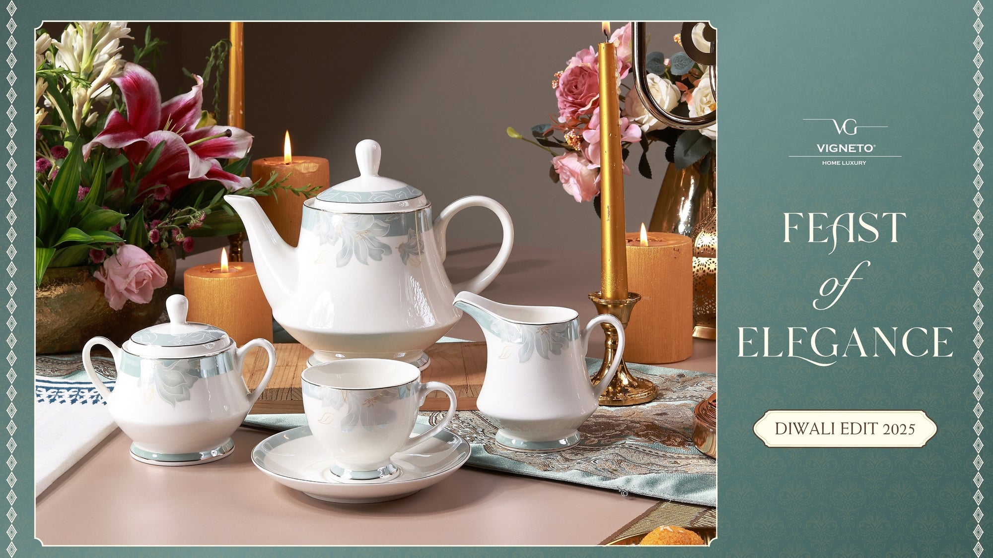 Victorian Green 15 Pcs Tea Set (Vintage Collection)