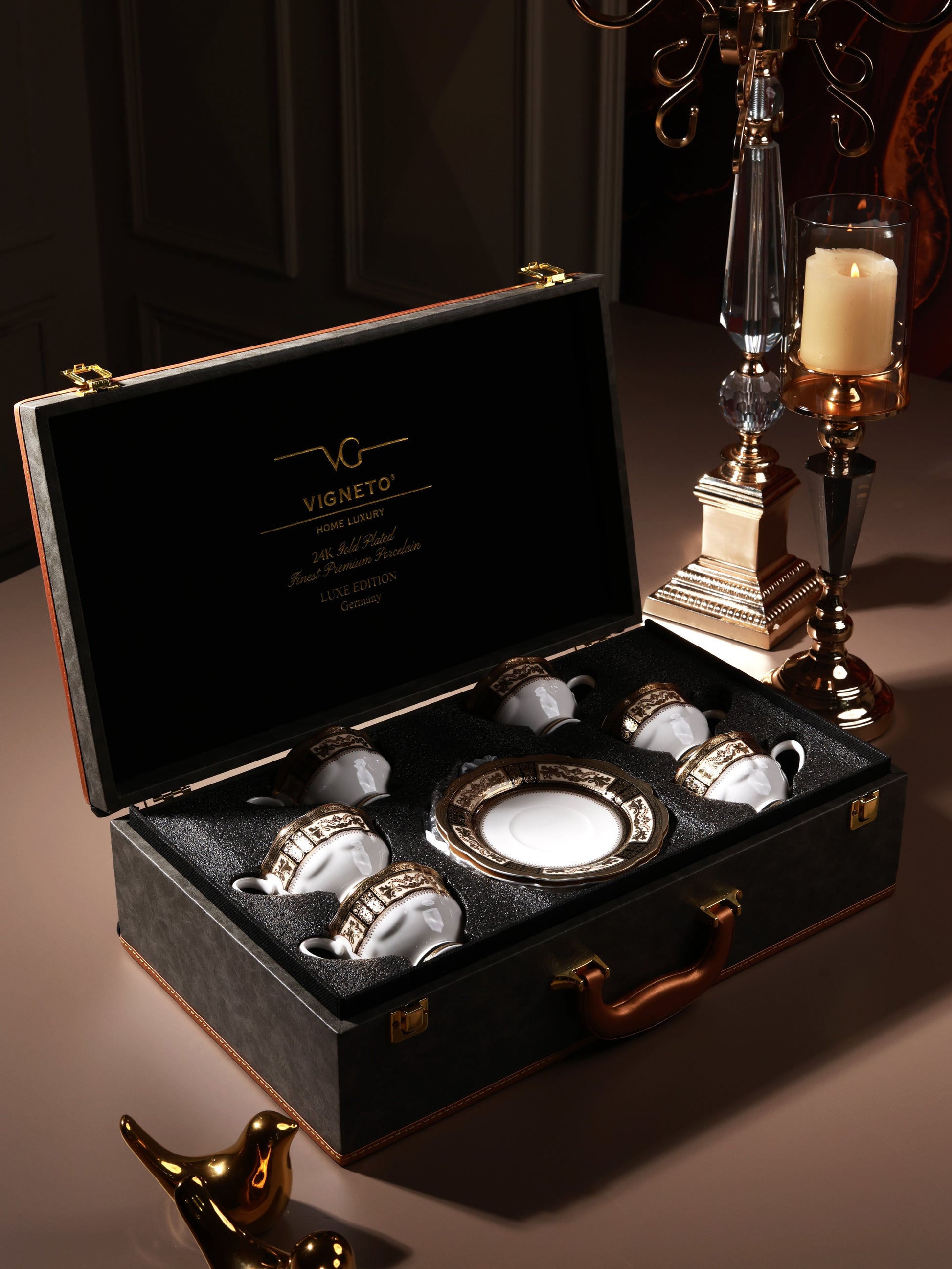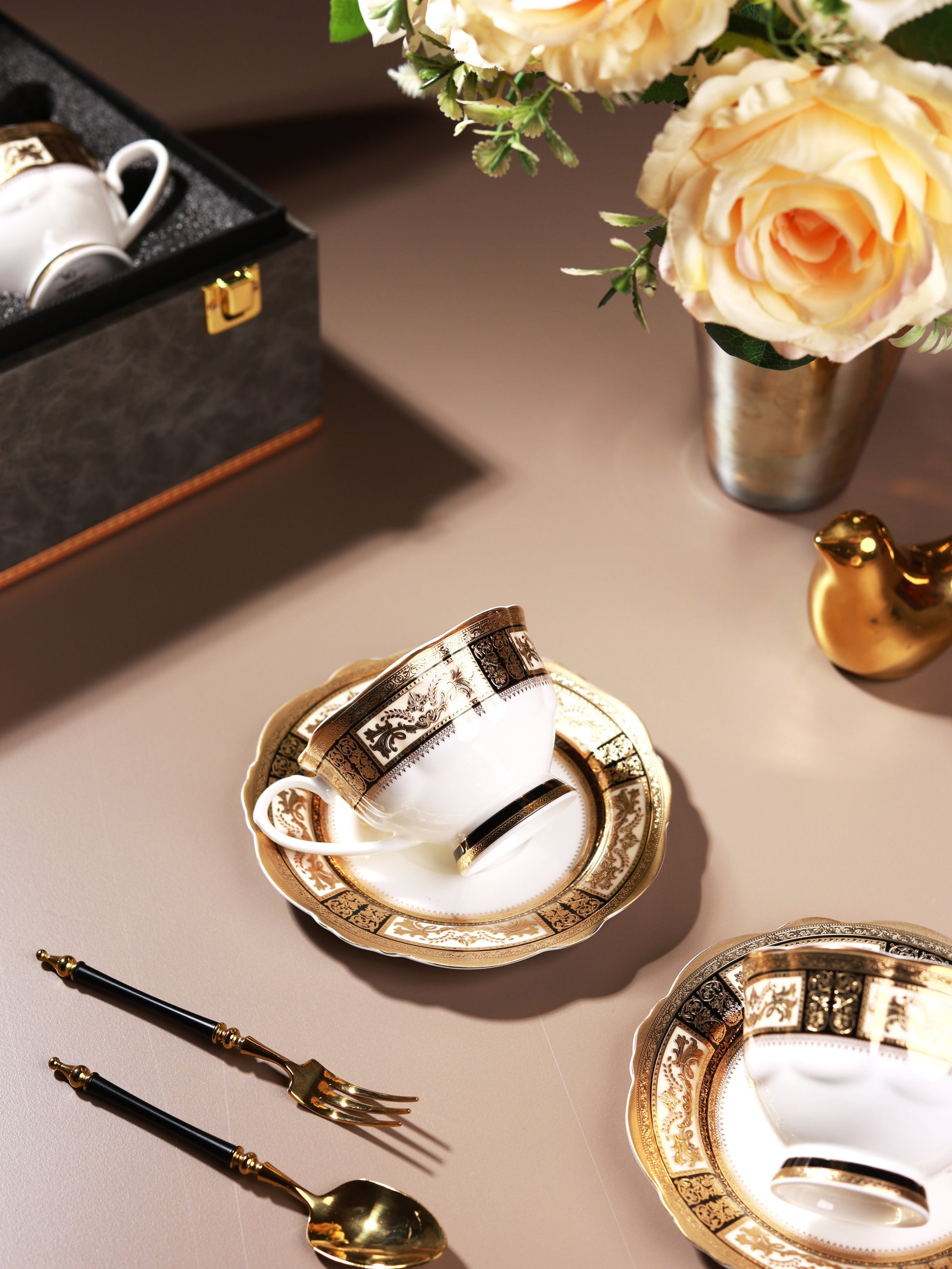 • The cup and saucer sets come in beautiful briefcase gift boxes which make them perfect for gifting or personal use