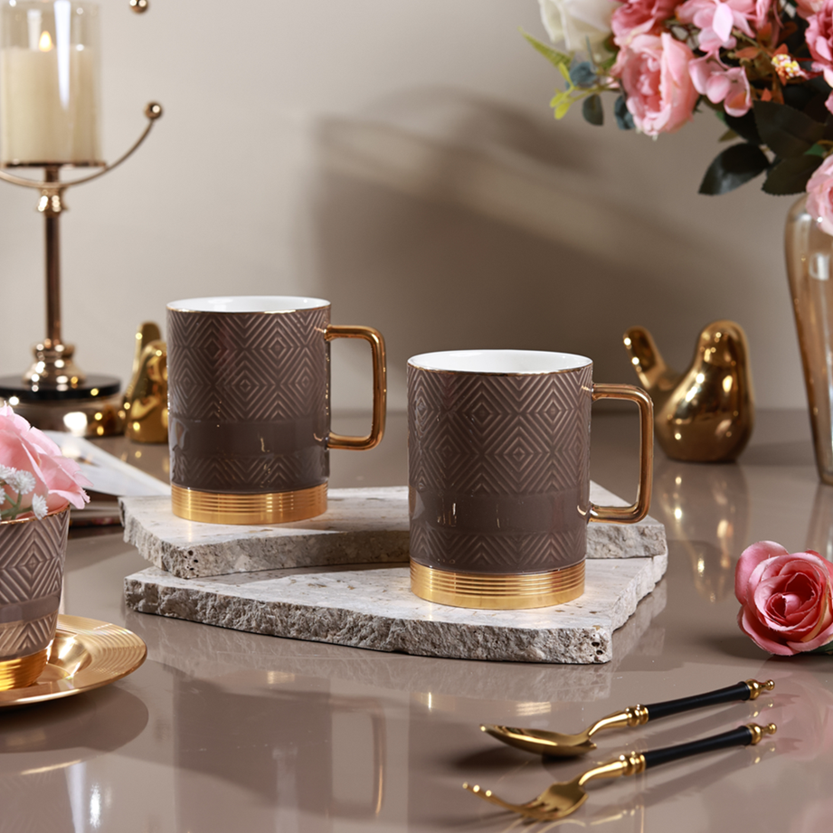 Chestnut Set of 2 Coffee Mugs (Metal Collection, 24K Gold, 300 ML)