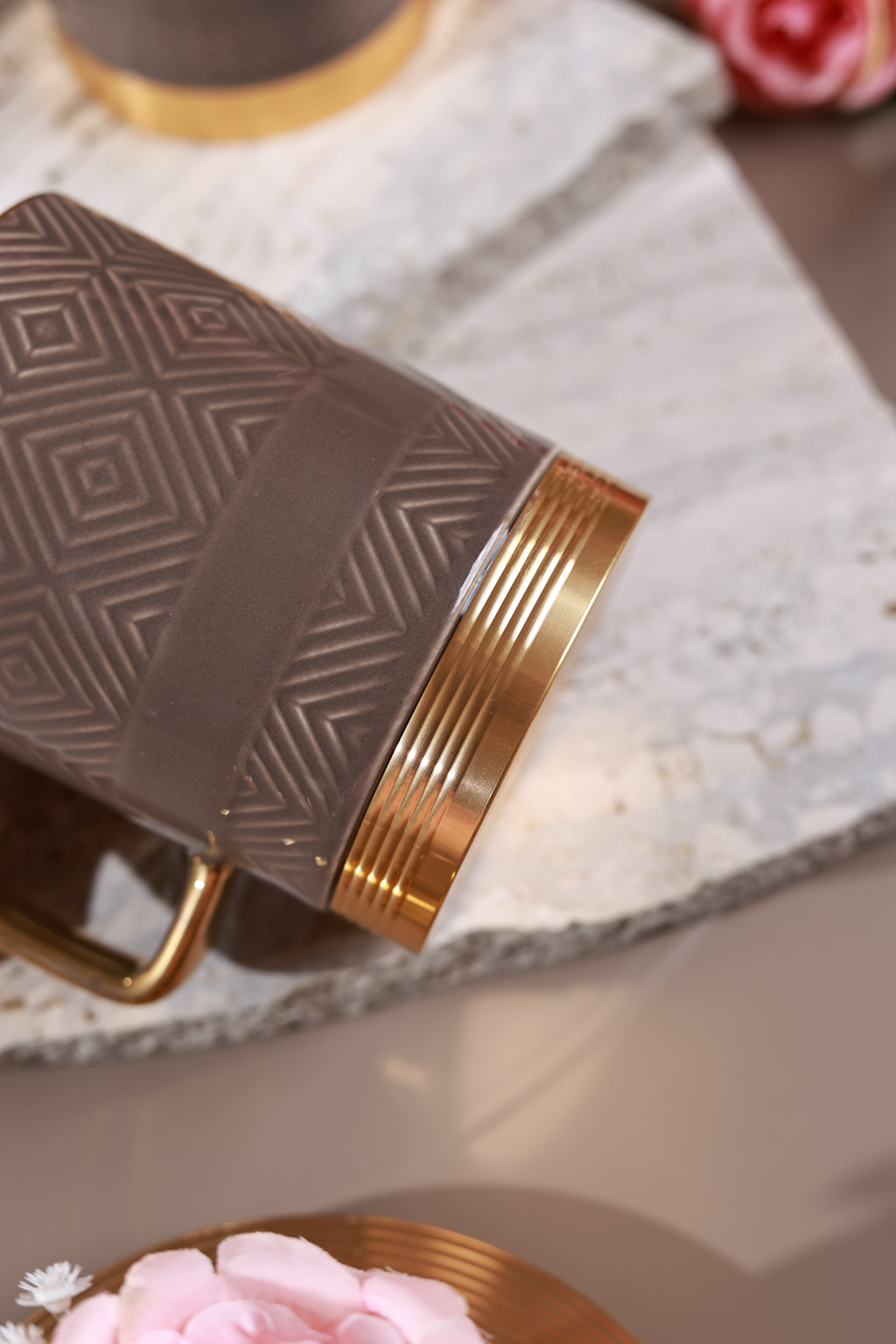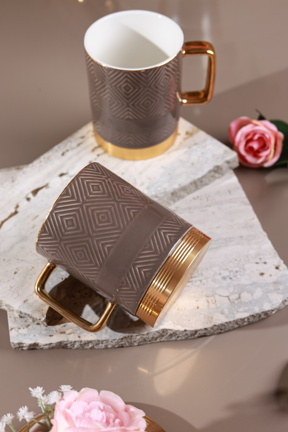 Grey Set of 2 Coffee Mugs (Metal Collection, 24K Gold, 300 ML)
