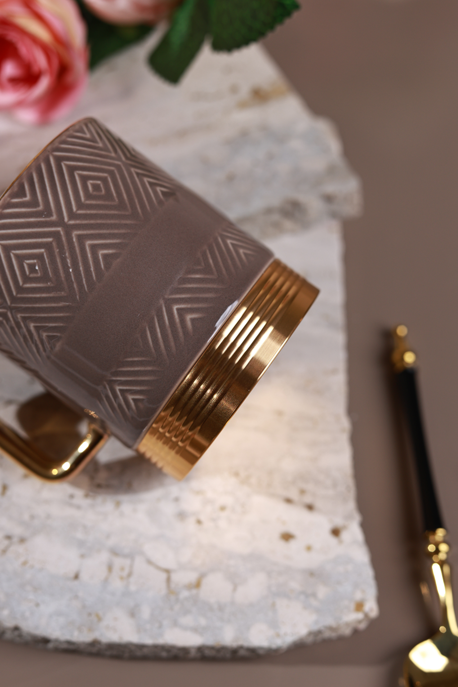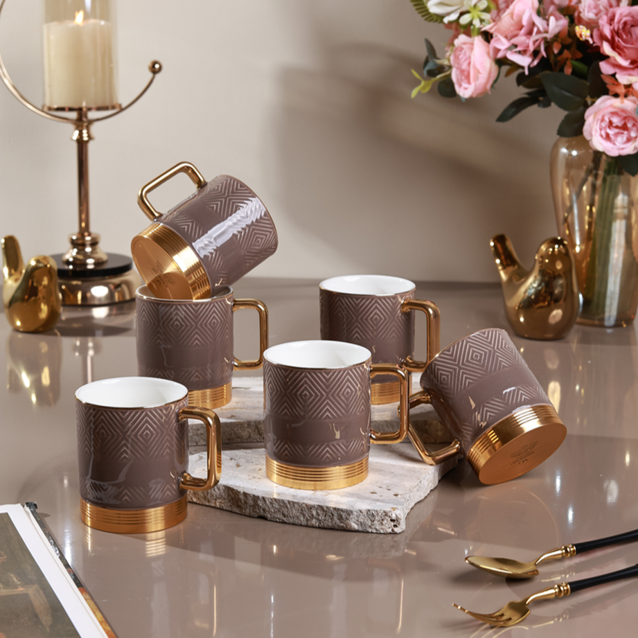 Grey Set of 6 Mugs (Metal Collection, 24K Gold, 180 ML)