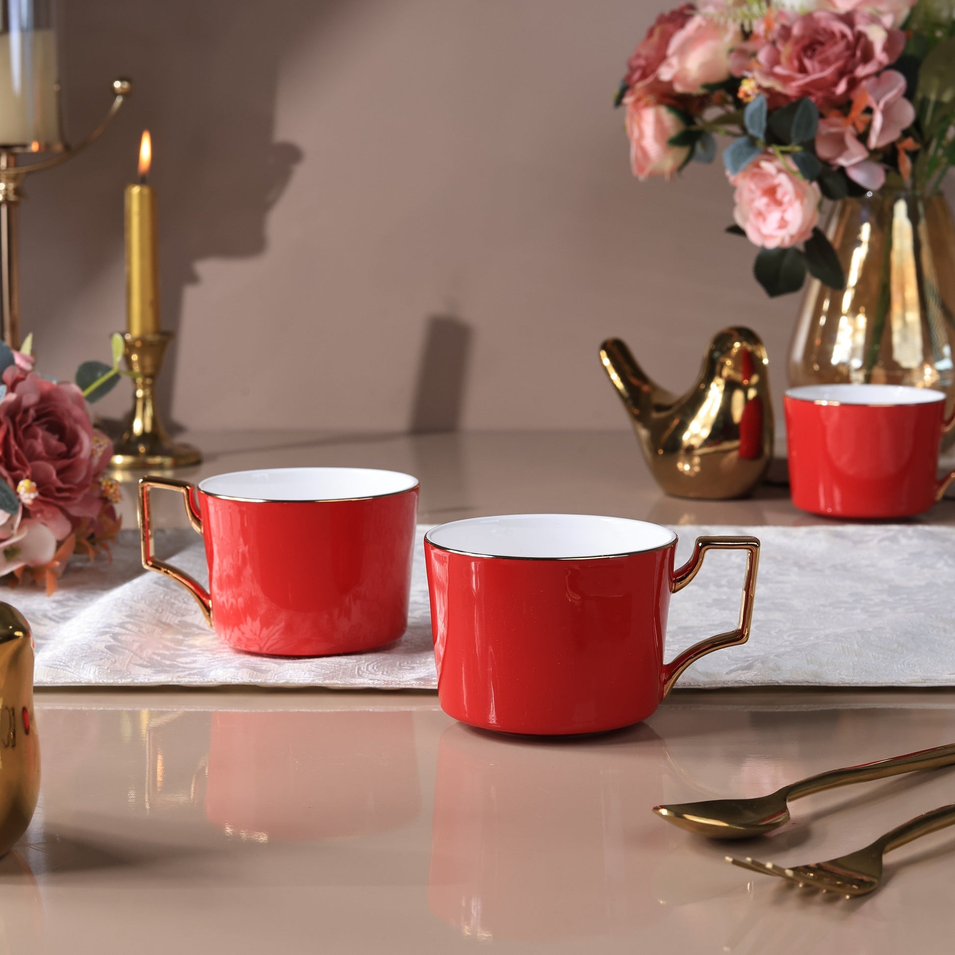 Gold Roses Mug Set (Capacity 200 ML, Set of 6)