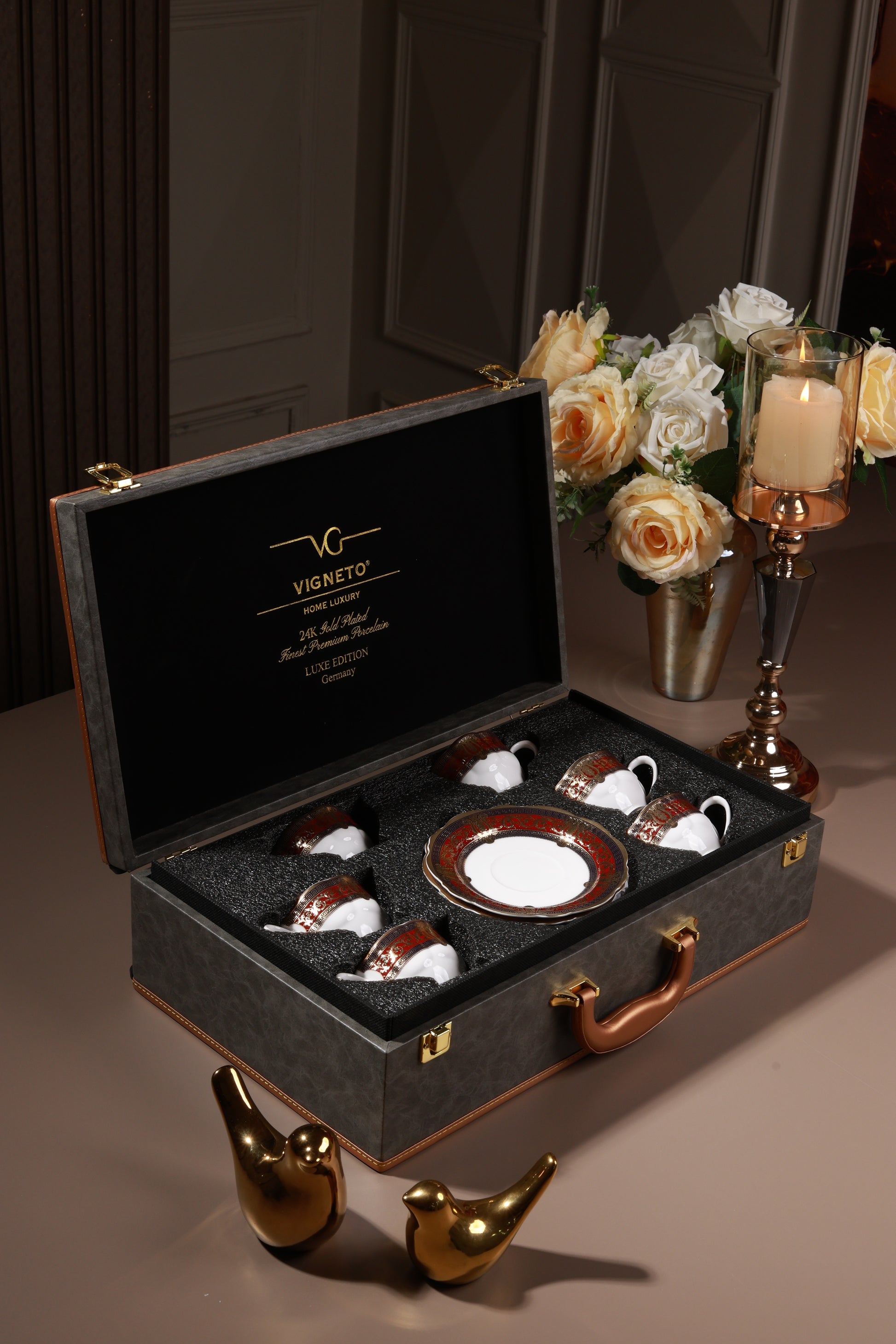 • The cup and saucer sets come in beautiful briefcase gift boxes which make them perfect for gifting or personal use