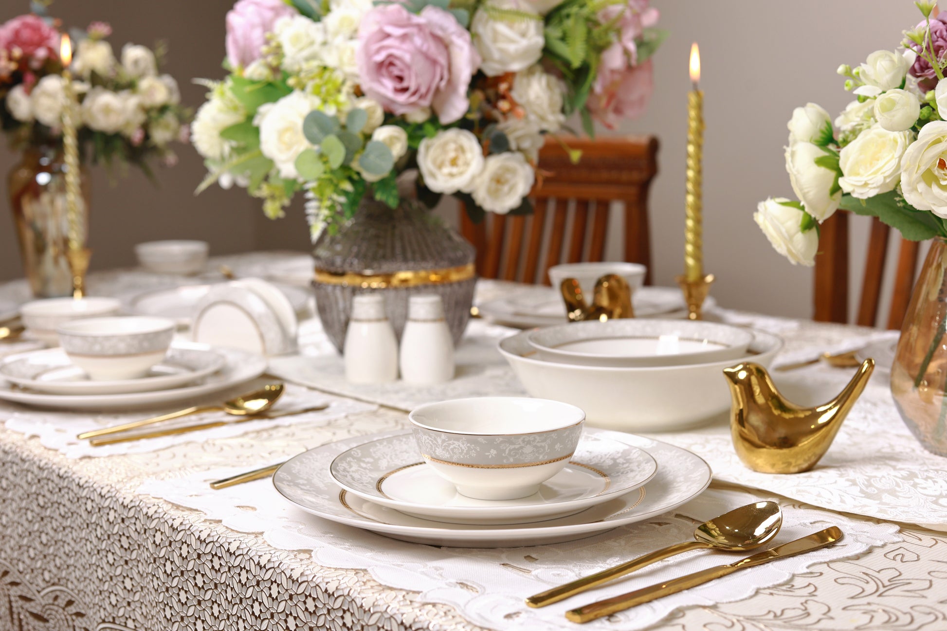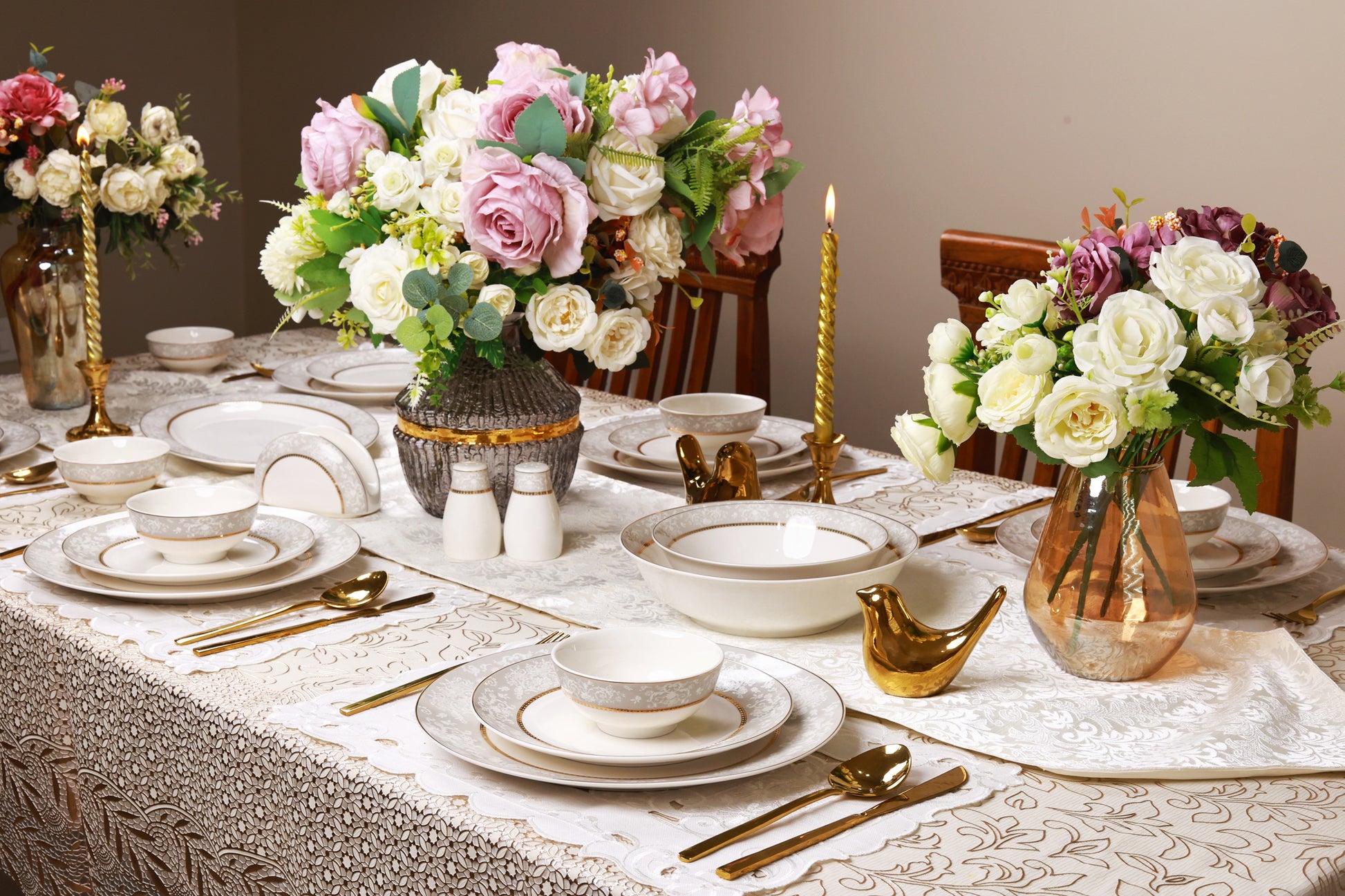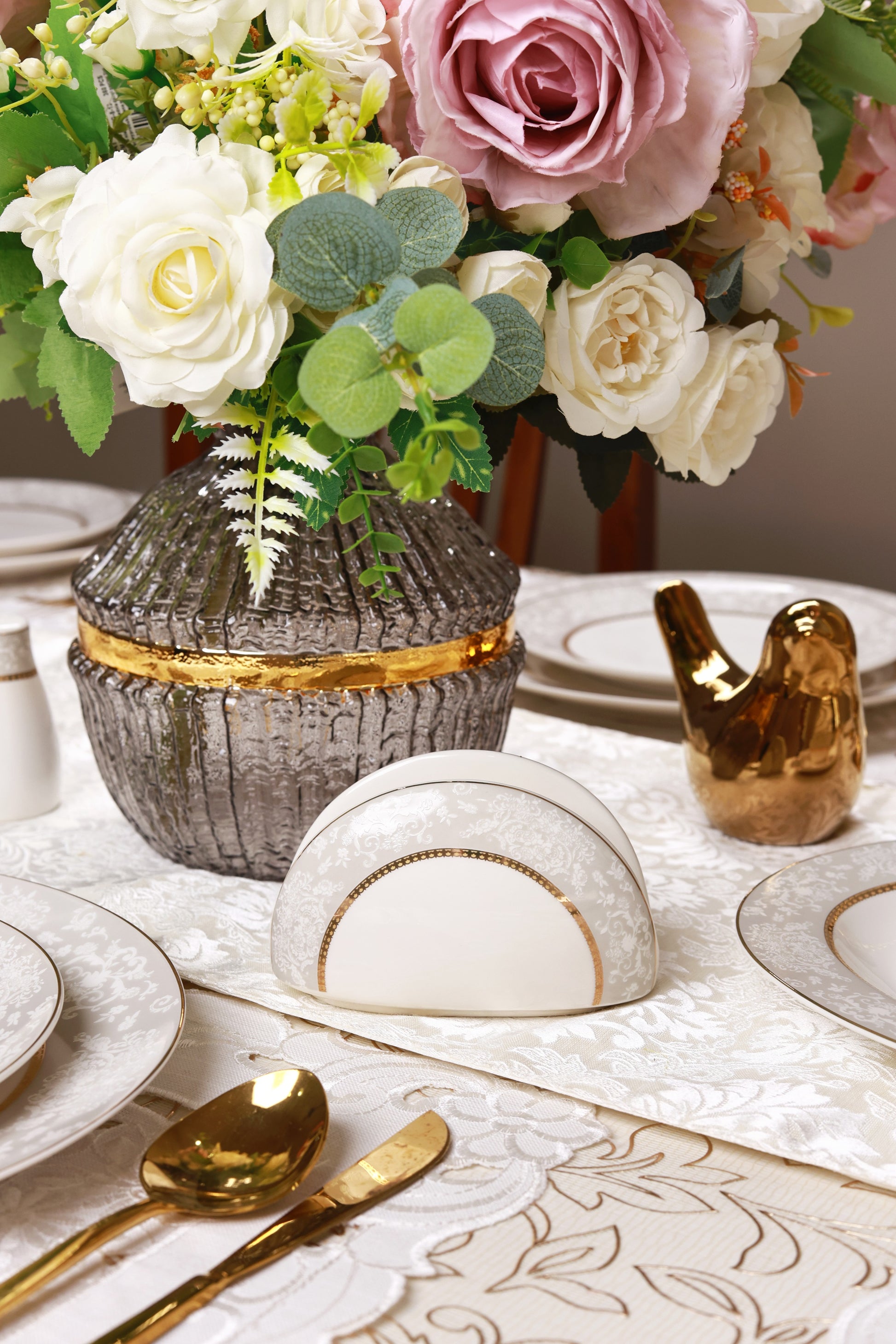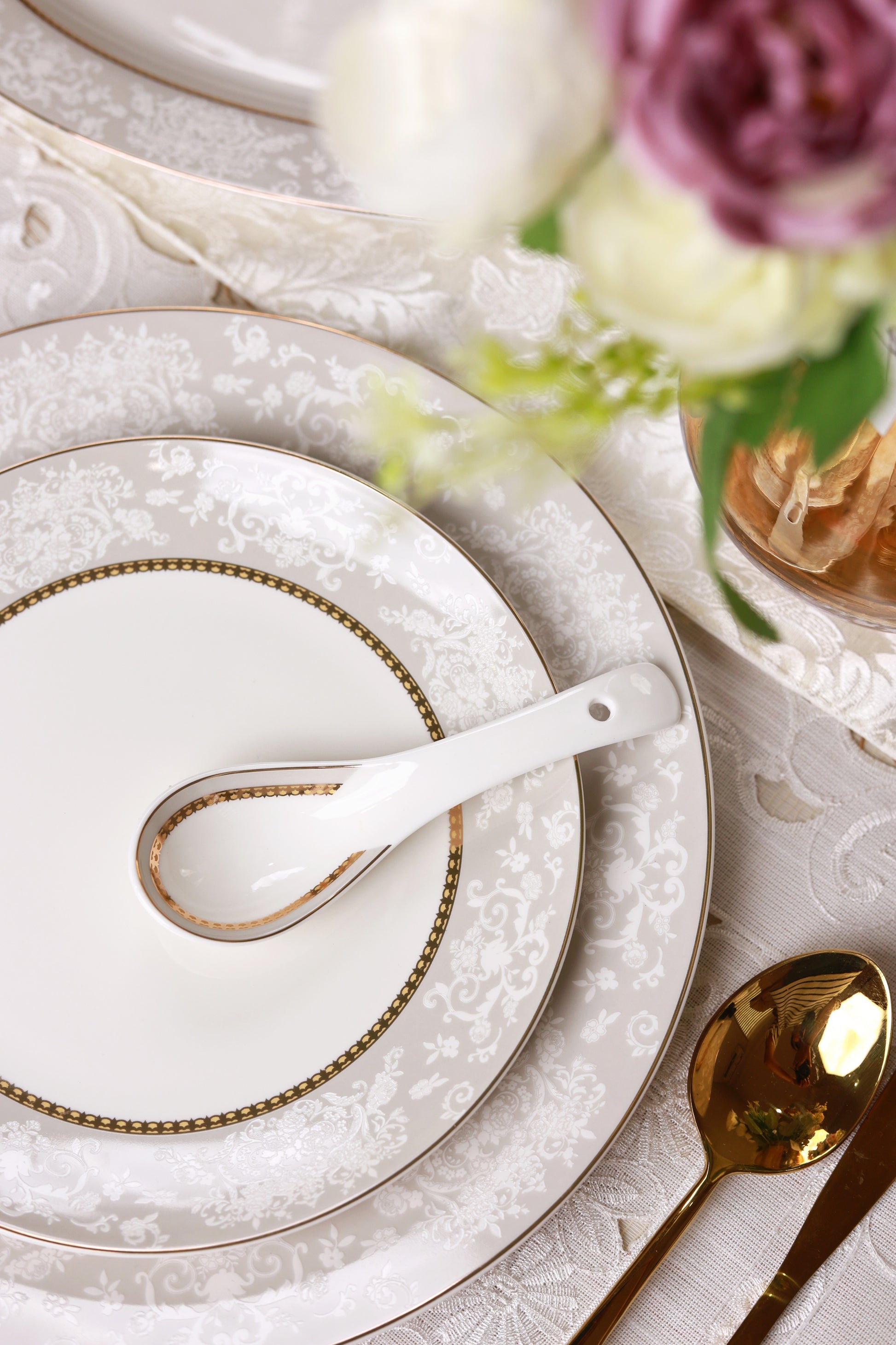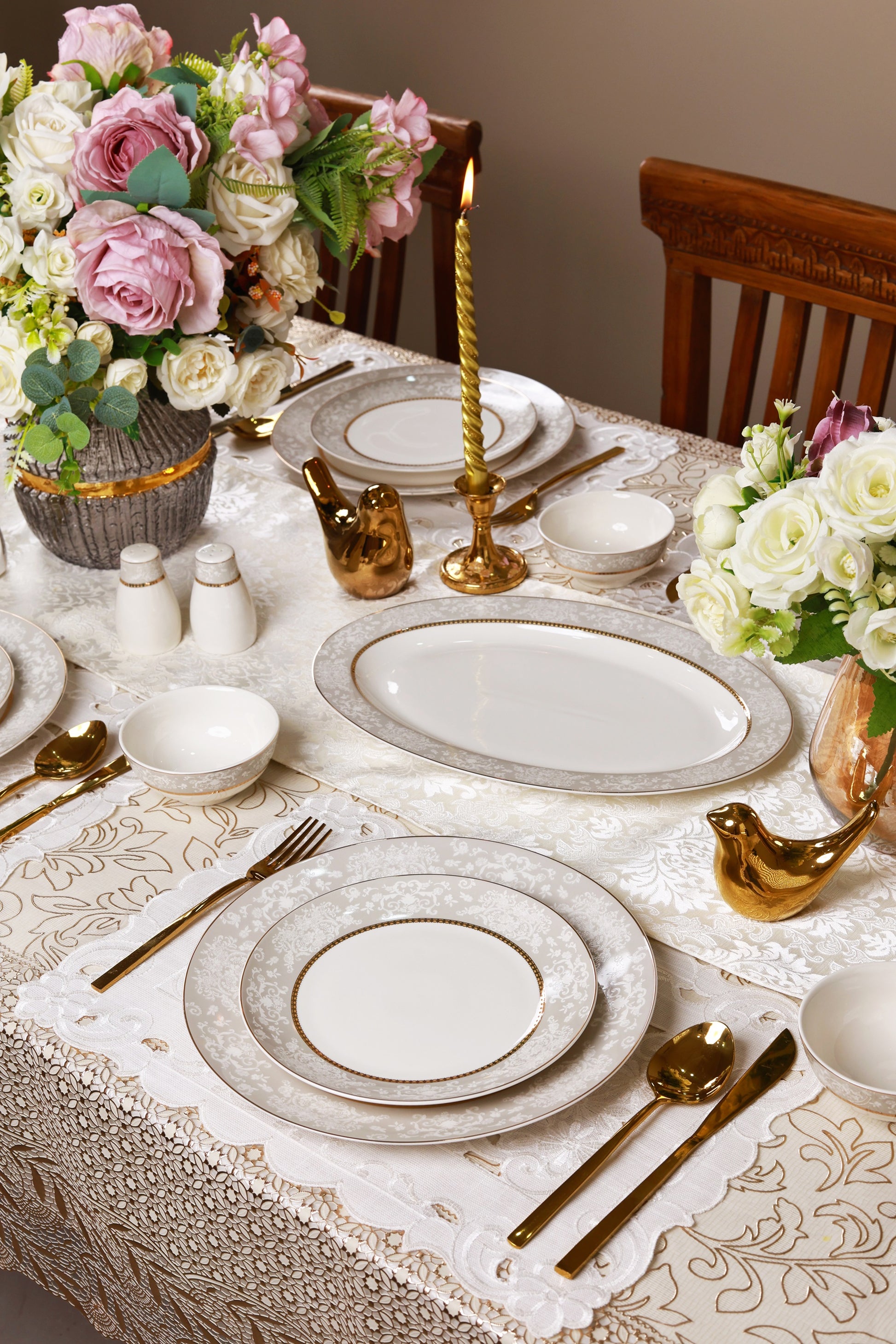 The exclusive Fleur in Grey Dinner Set embellished with exquisite floral patterns on grey band and lush gold border will be a charming addition to every dinnerware collection! Host a royal feast for your loved ones in class with our Fleur in Grey Dinner Set.