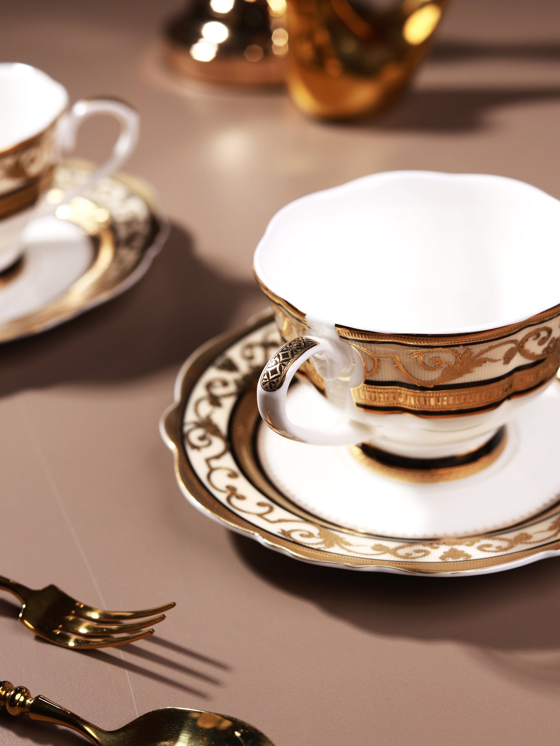 Step into timeless grandeur with our Gilded Realm Luxe Edition Cup and Saucer Set, featuring exquisite 3D embossed 24K gold detailing and the richness of imperial craftsmanship.