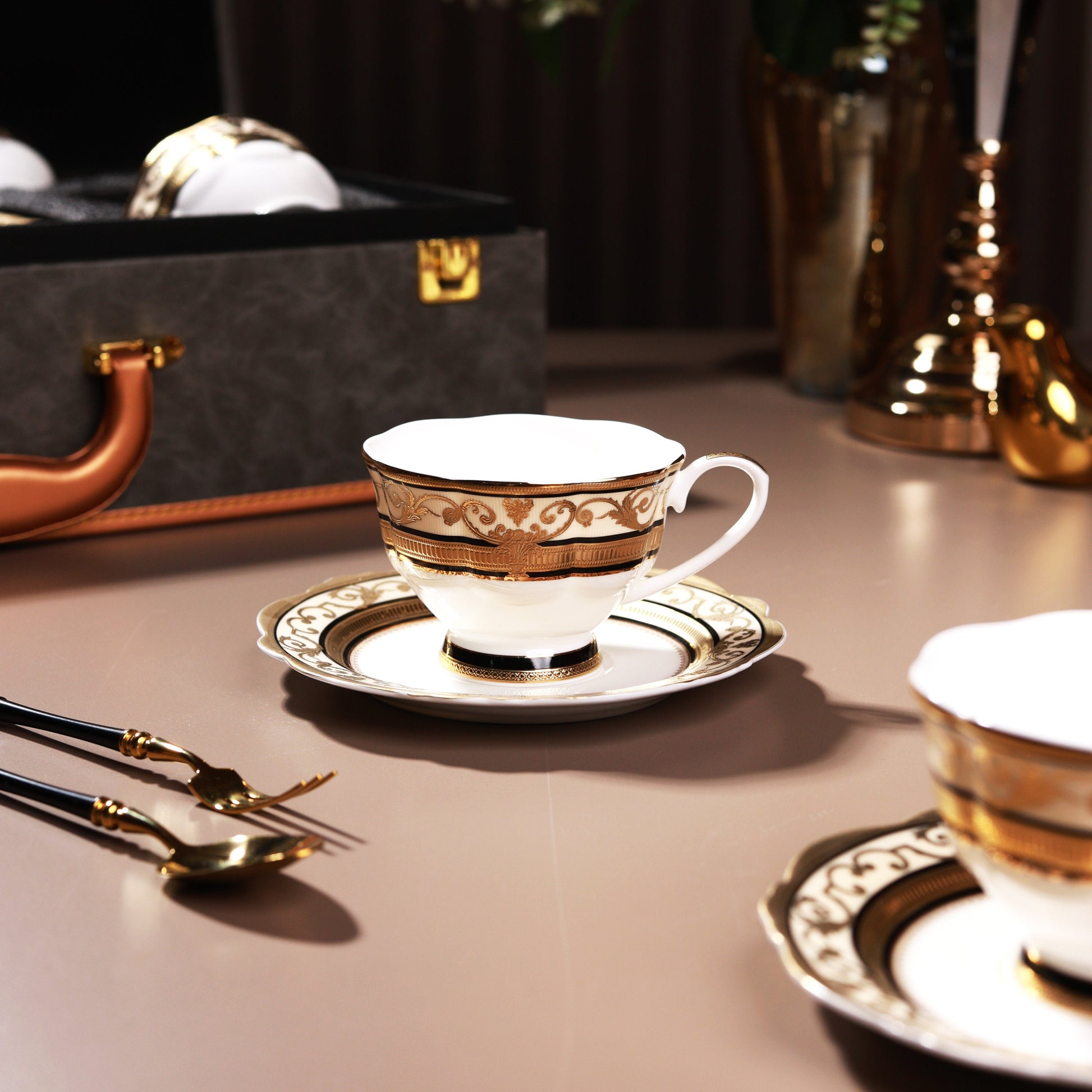 Gilded Realm Cup and Saucer Set (Set of 6, Palace Collection, 24K Embossed Gold)