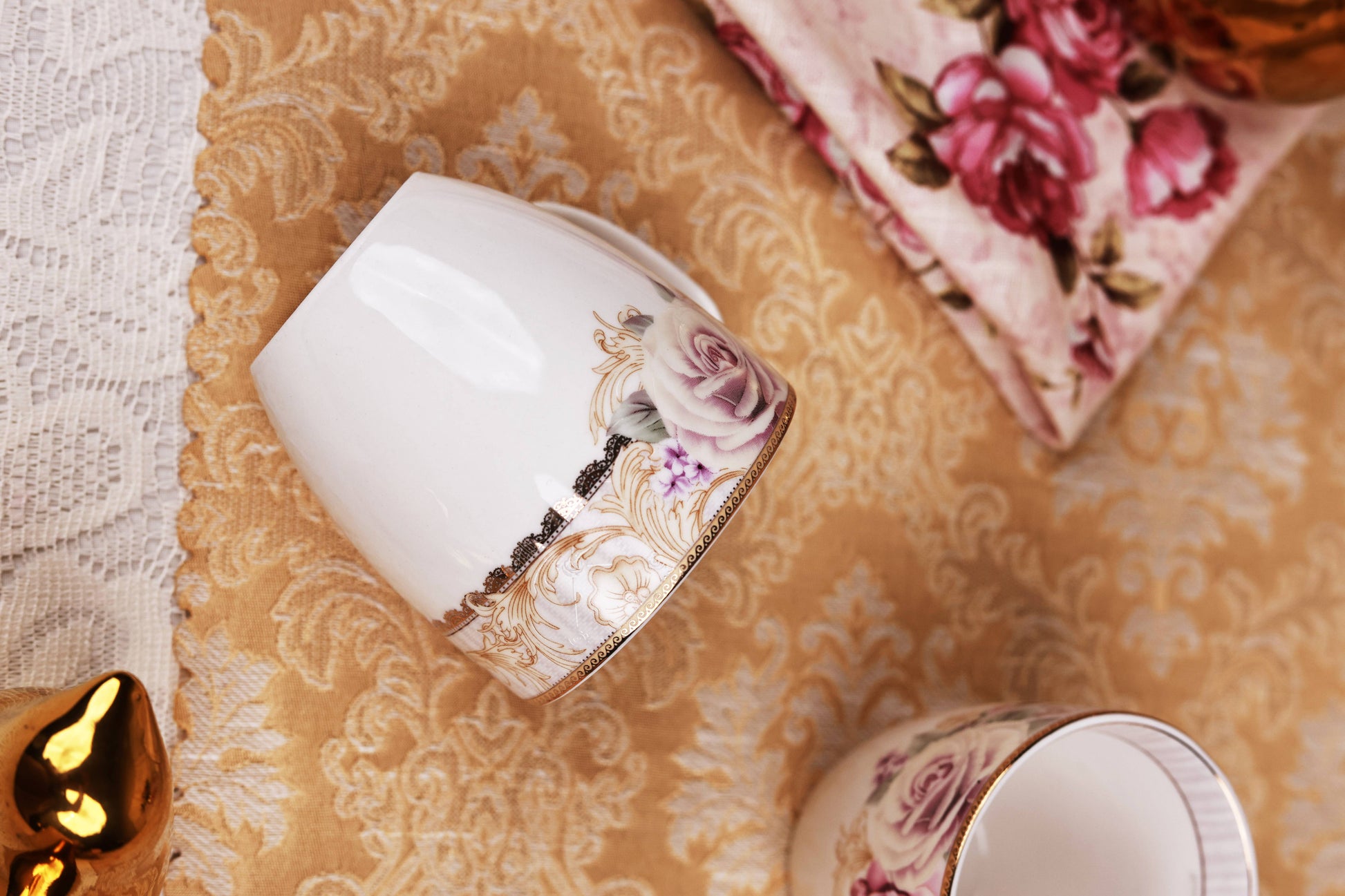 Gold Roses Mug Set (Capacity 200 ML, Set of 6)