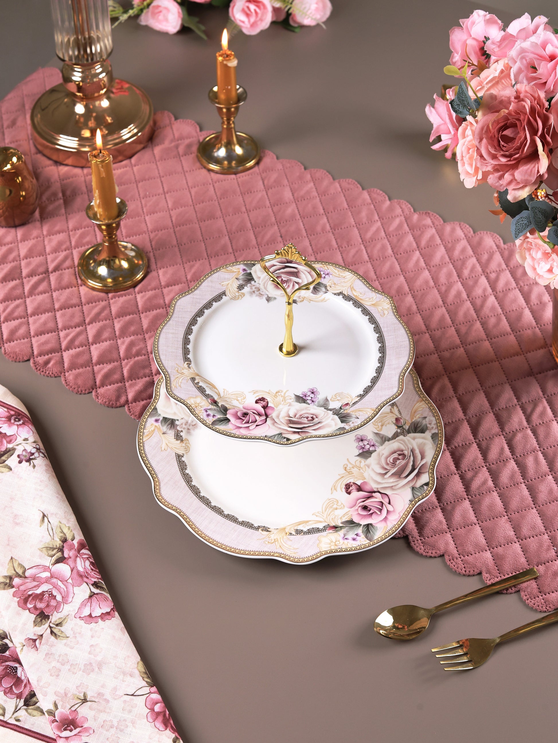 Gold Roses Two Tier Dessert Stand