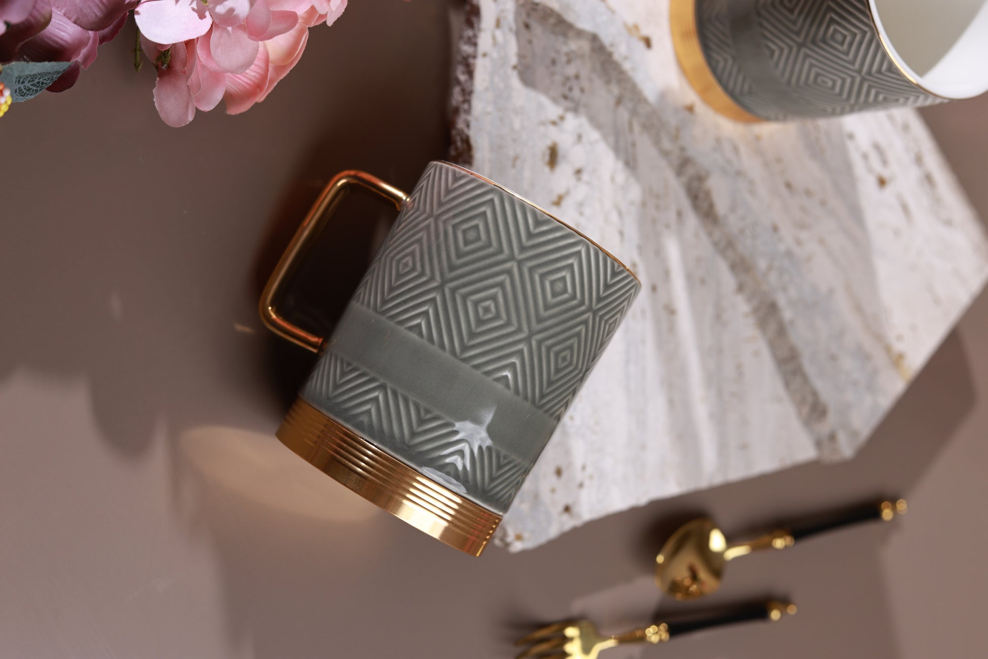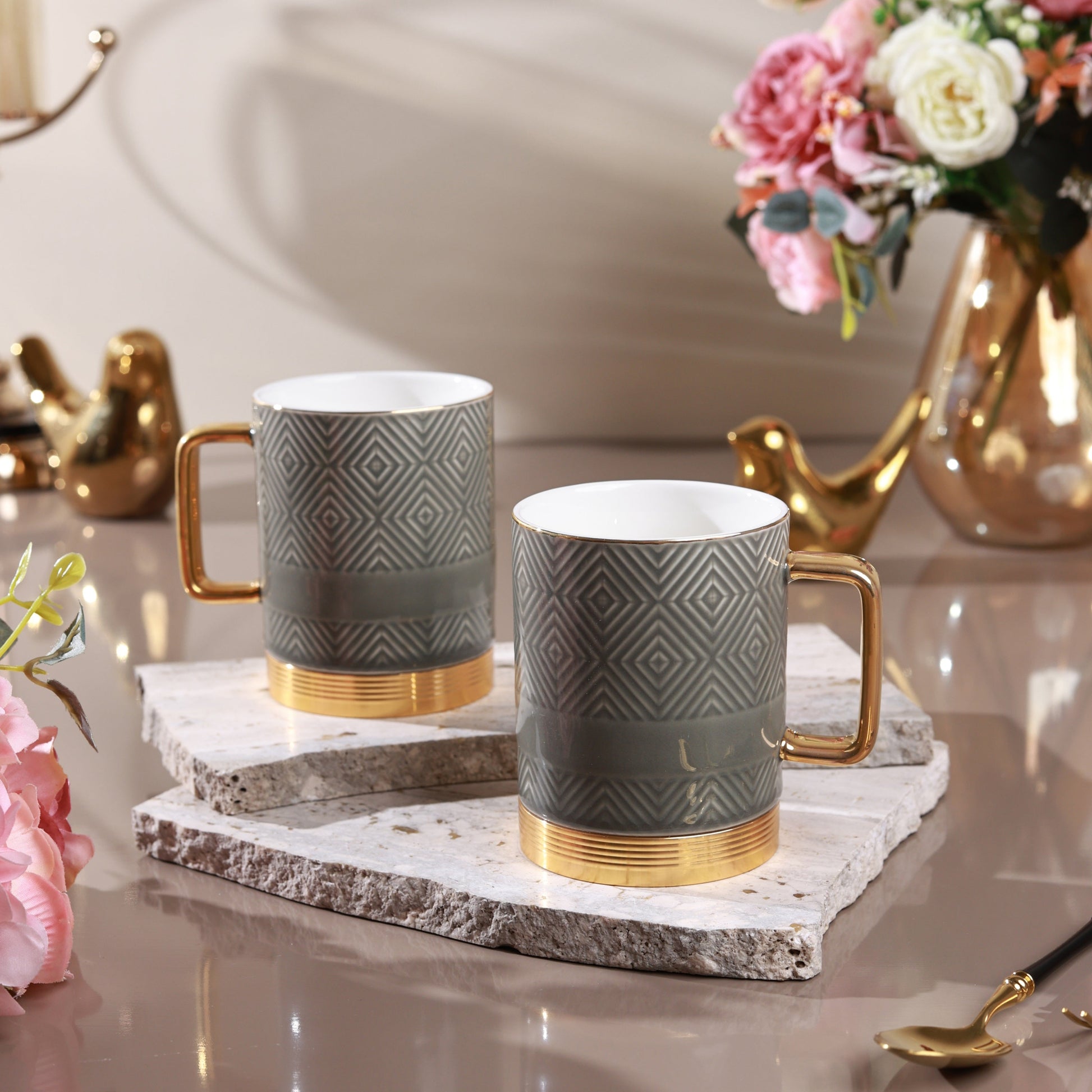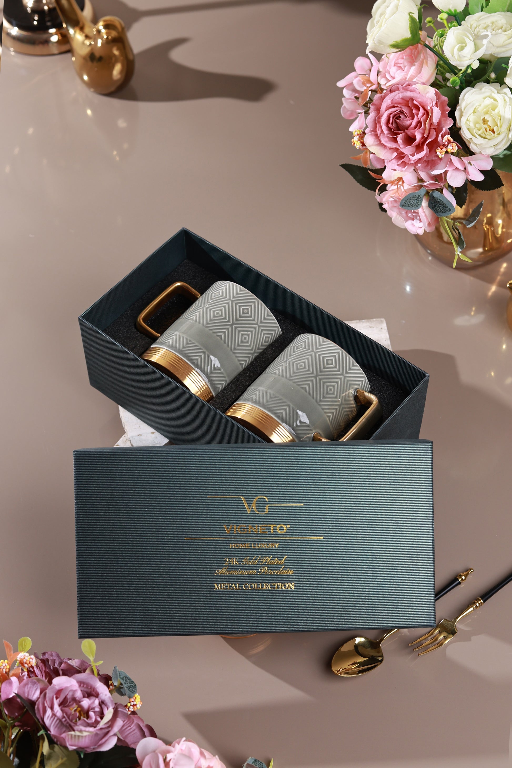 Grey Set of 2 Coffee Mugs (Metal Collection, 24K Gold, 300 ML)