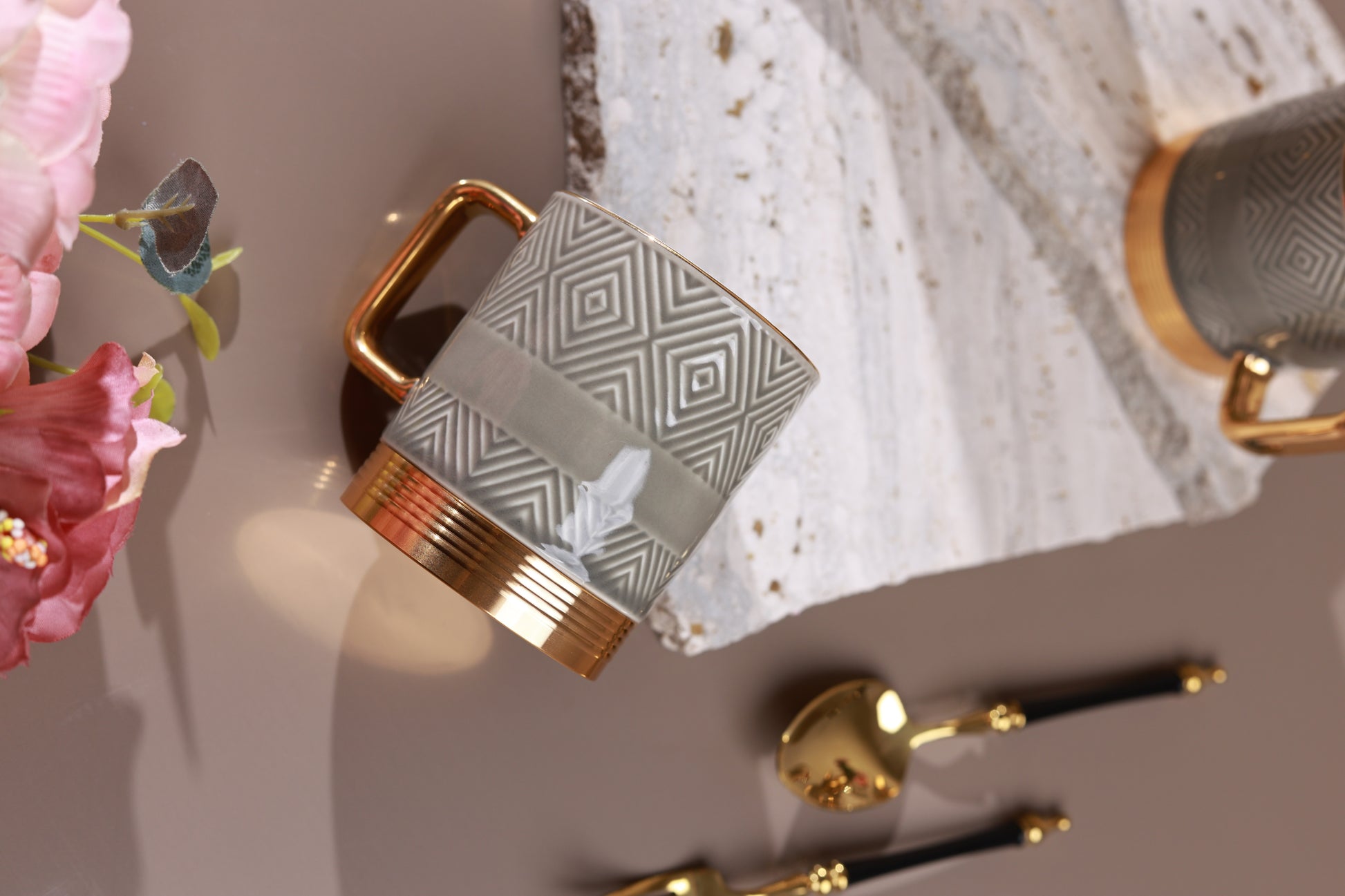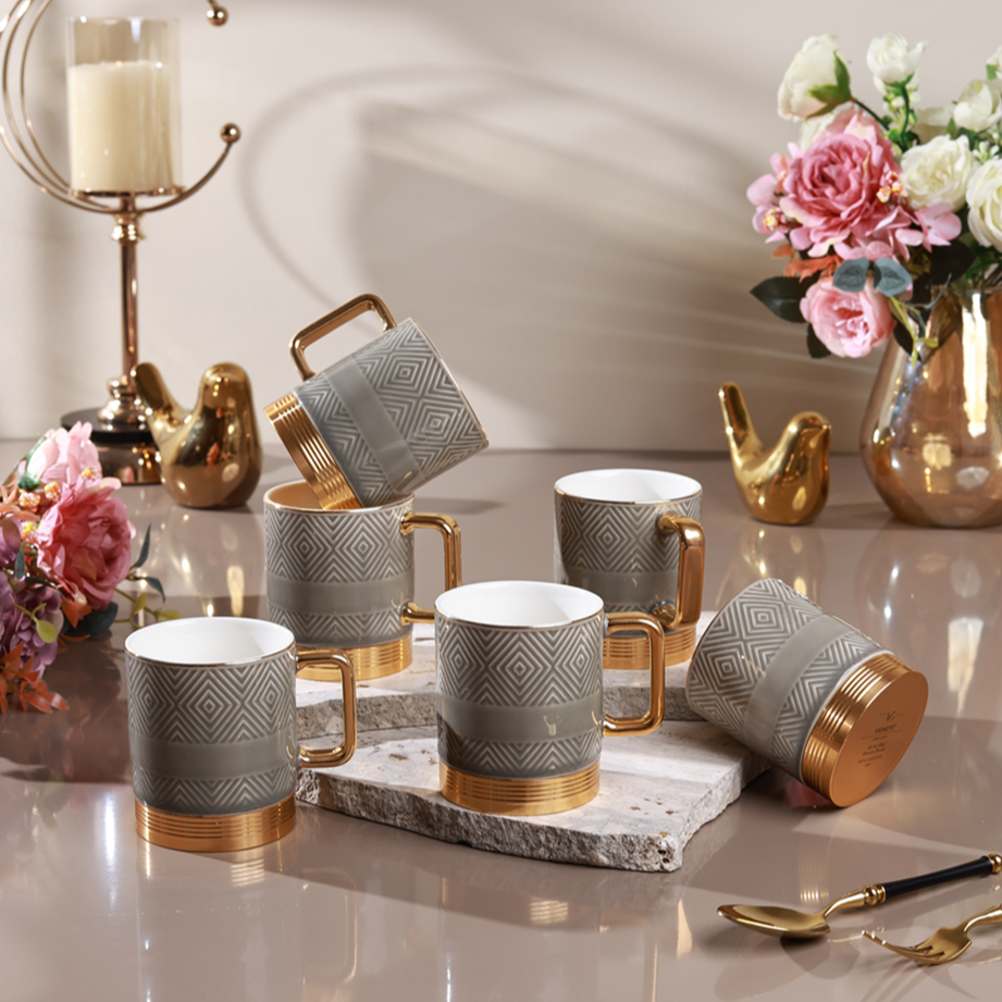 Grey Set of 6 Mugs (Metal Collection, 24K Gold, 180 ML)