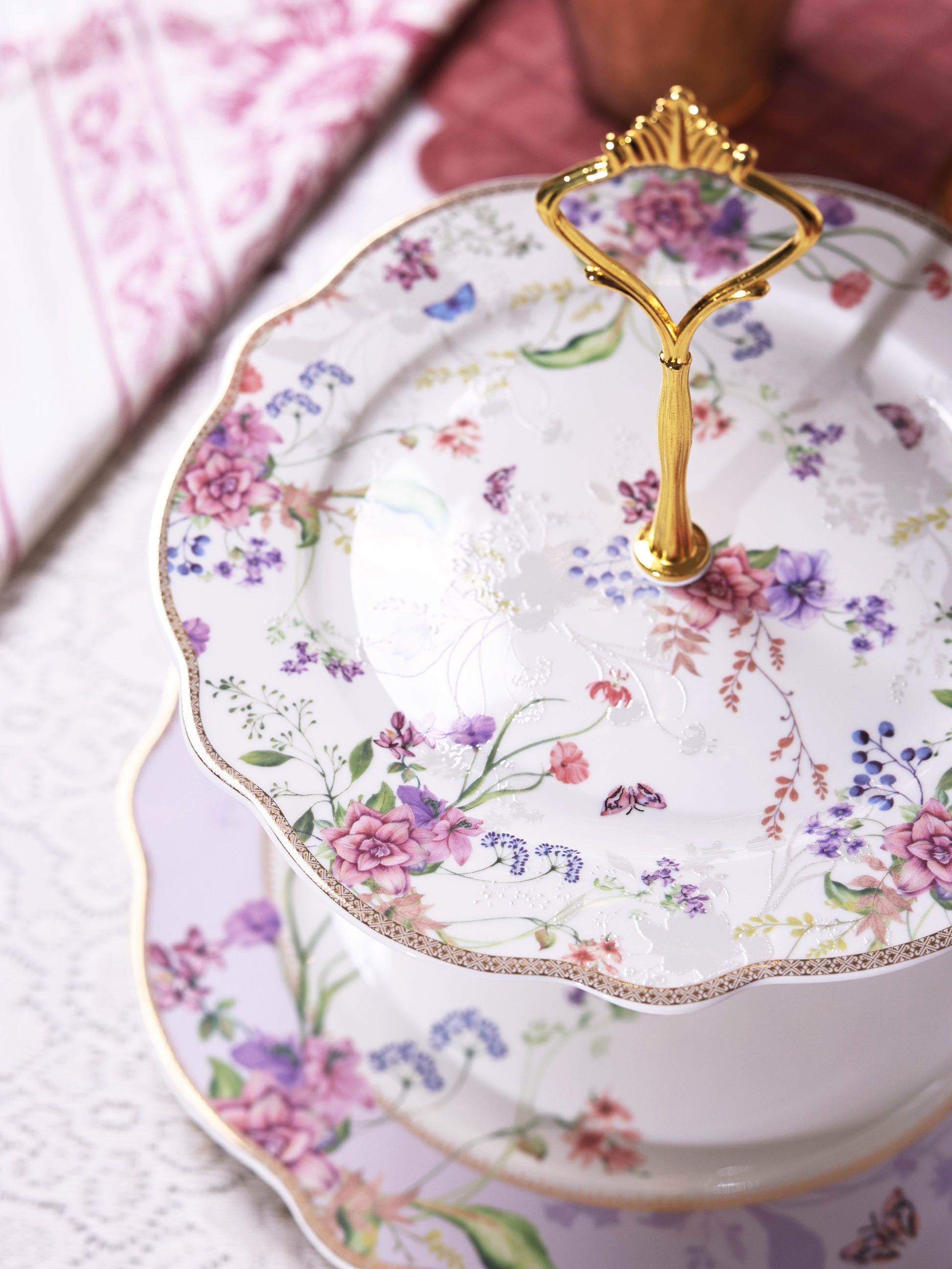 Lilac Garden Two Tier Dessert Stand