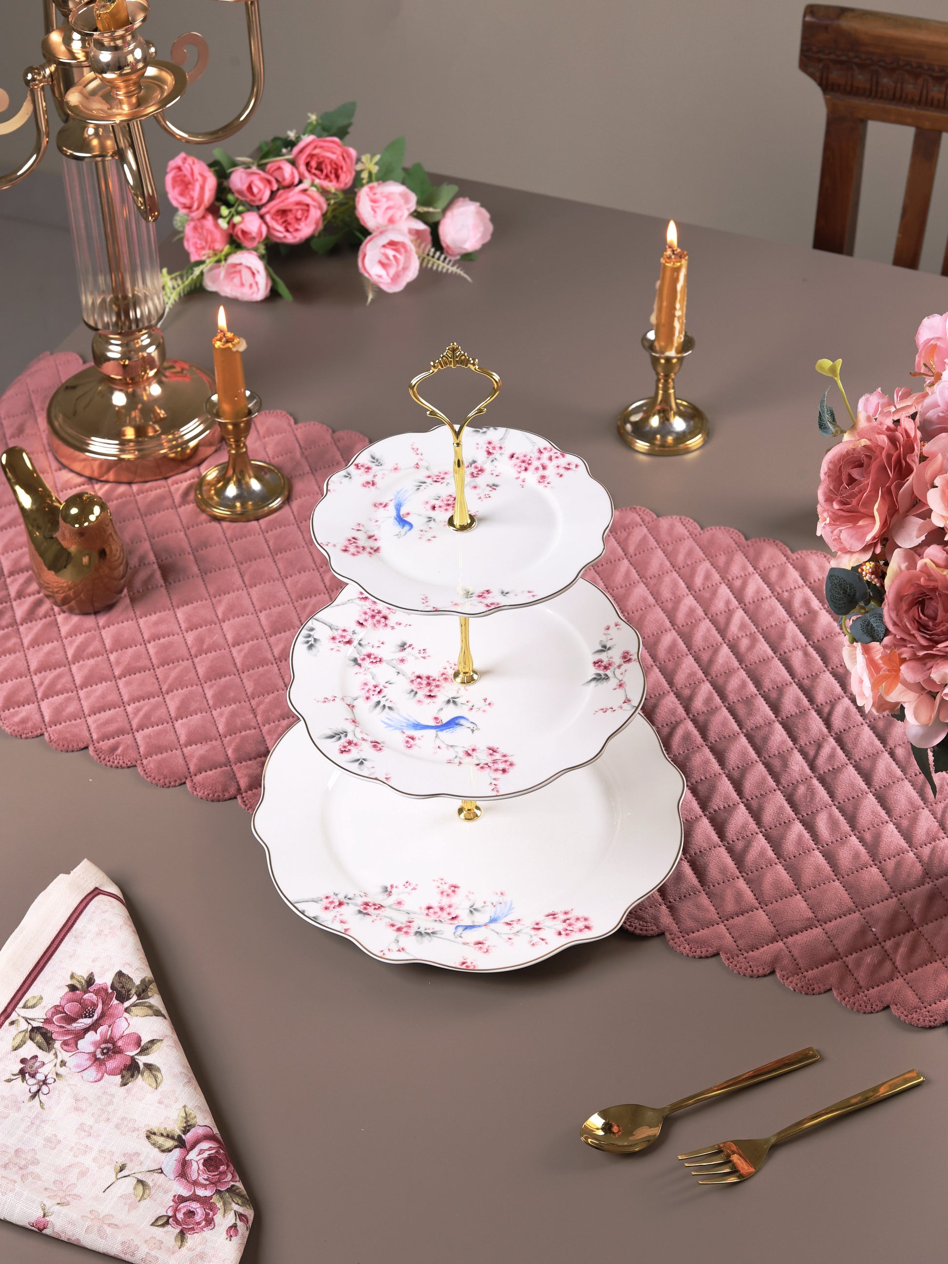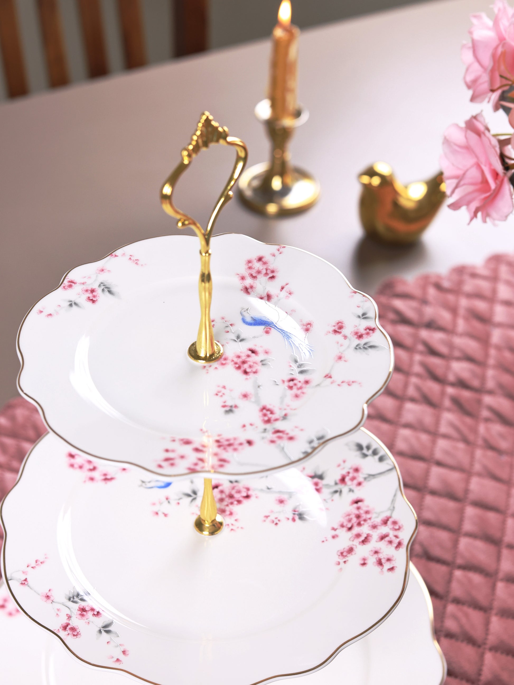 An enchanting collection of serveware, embossed with splendid peacock and blossoming pink orchids, this unique floral cake stand is an absolute delight to all the crockery lovers! Display delicious brownies, pastries and muffins or mouth-watering barfi and gajjak in our unique floral shaped tableware range!