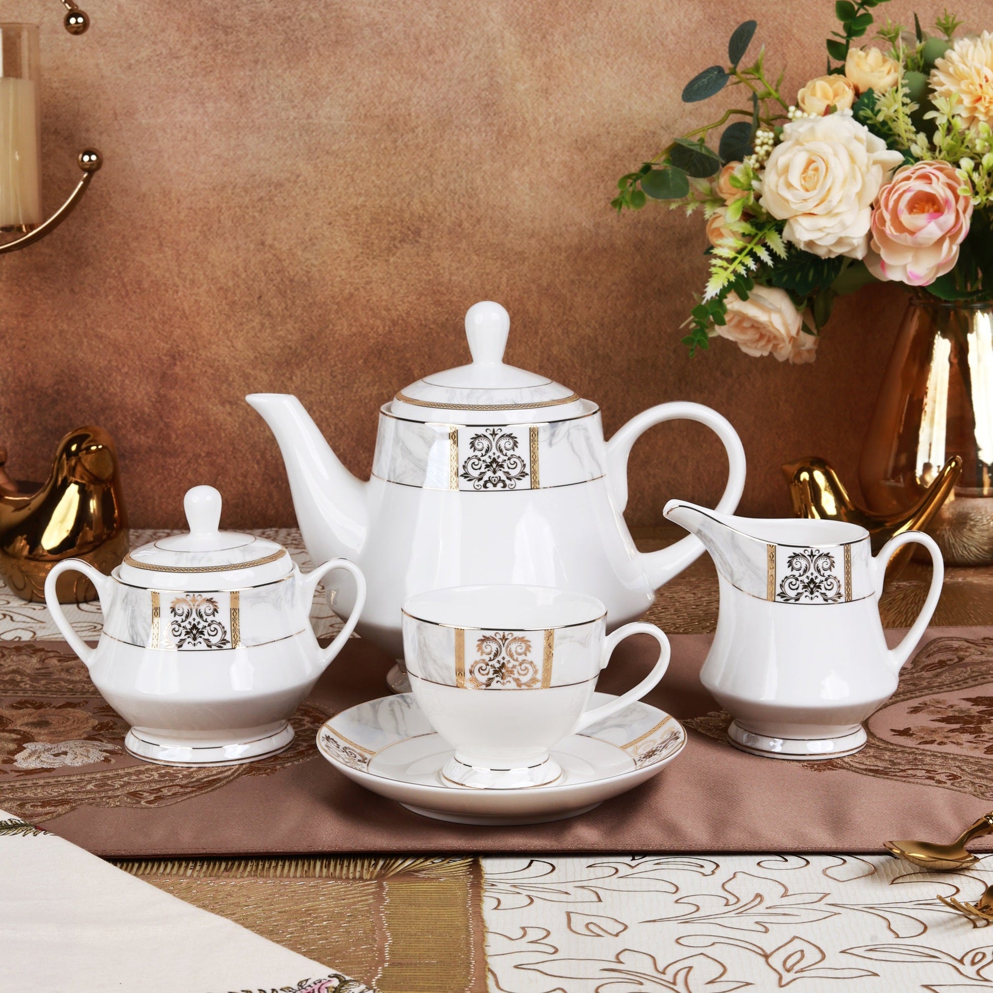 Adorned with magnificent gold motifs, our Regency Gold Tea Set is no less than a luxurious blend of timelessness and elegance. The gold tones on marble finish reflect light in a way that adds depth and sophistication to your table.