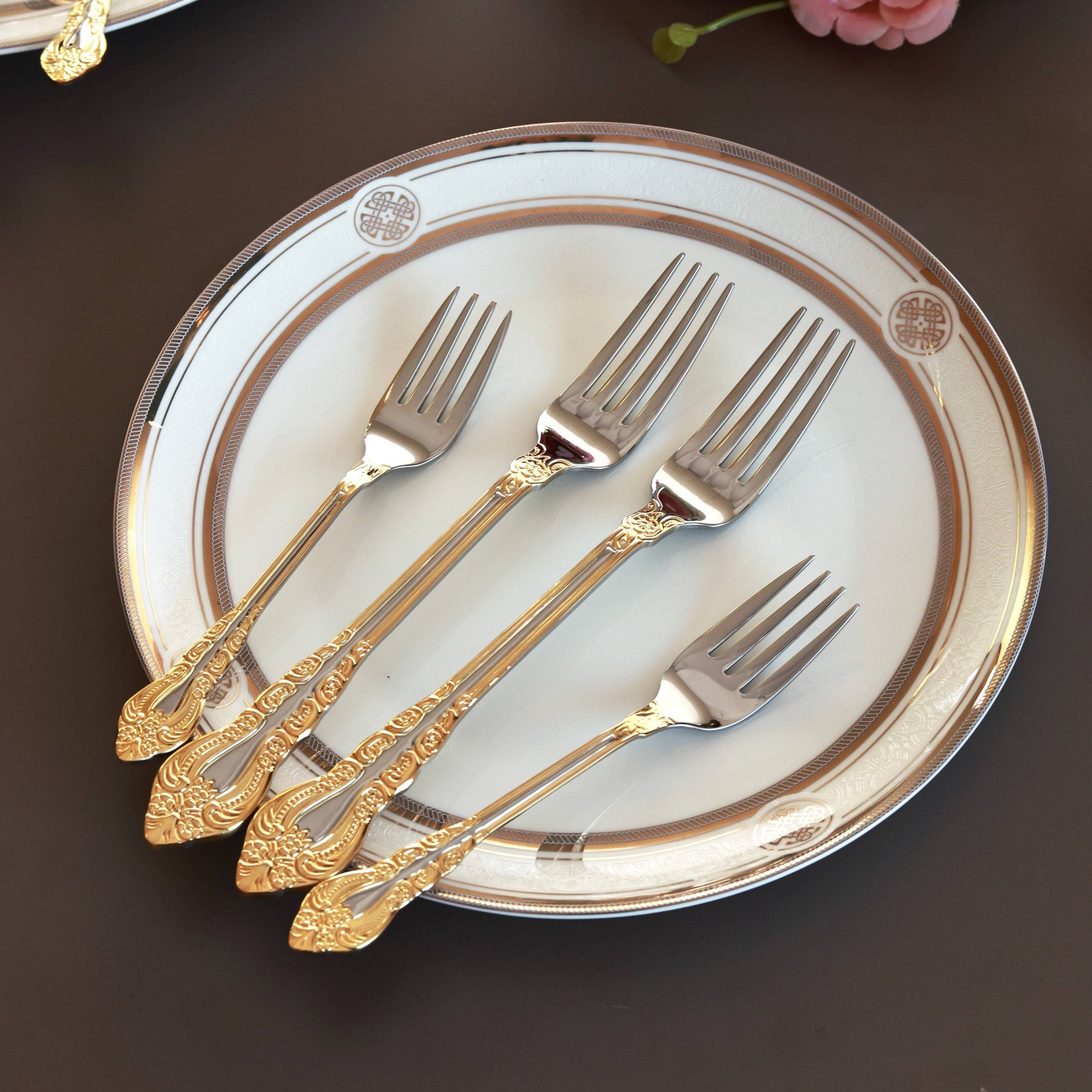 Grecian Black Table Fork (Shine Gold Finish, Set of 6)