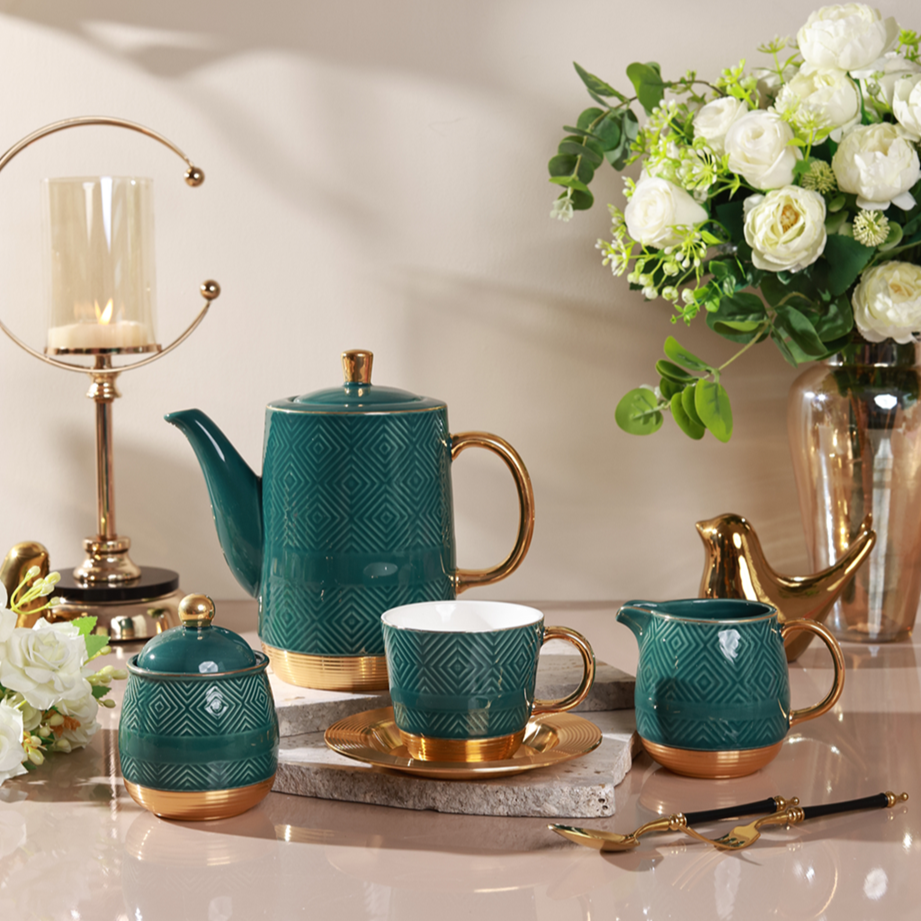 Verde 15 Pcs Tea Set (Metal Collection, 24K Gold)