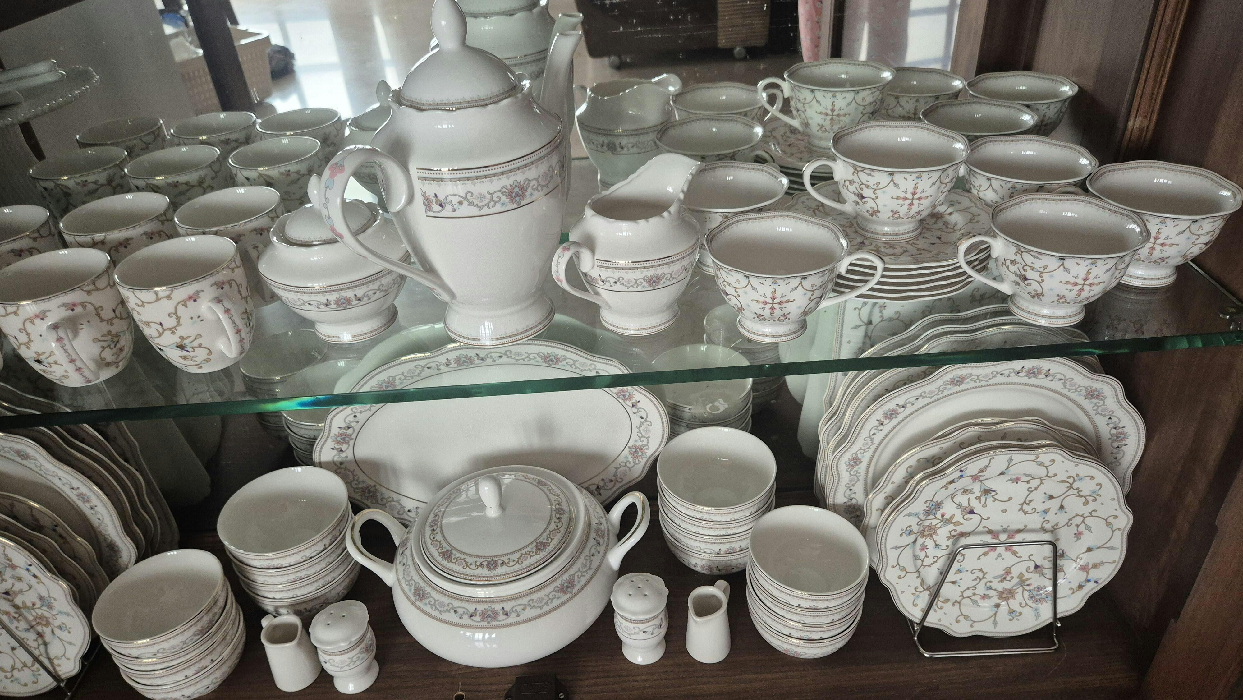 The soothing pastel tones balances the elaborate floral design making this dinner set minimal, yet elegant. The gold border and flower buds add perfect touch to the adorable design. The unique floral shape of the dinnerware is an absolute delight to all the crockery lovers!