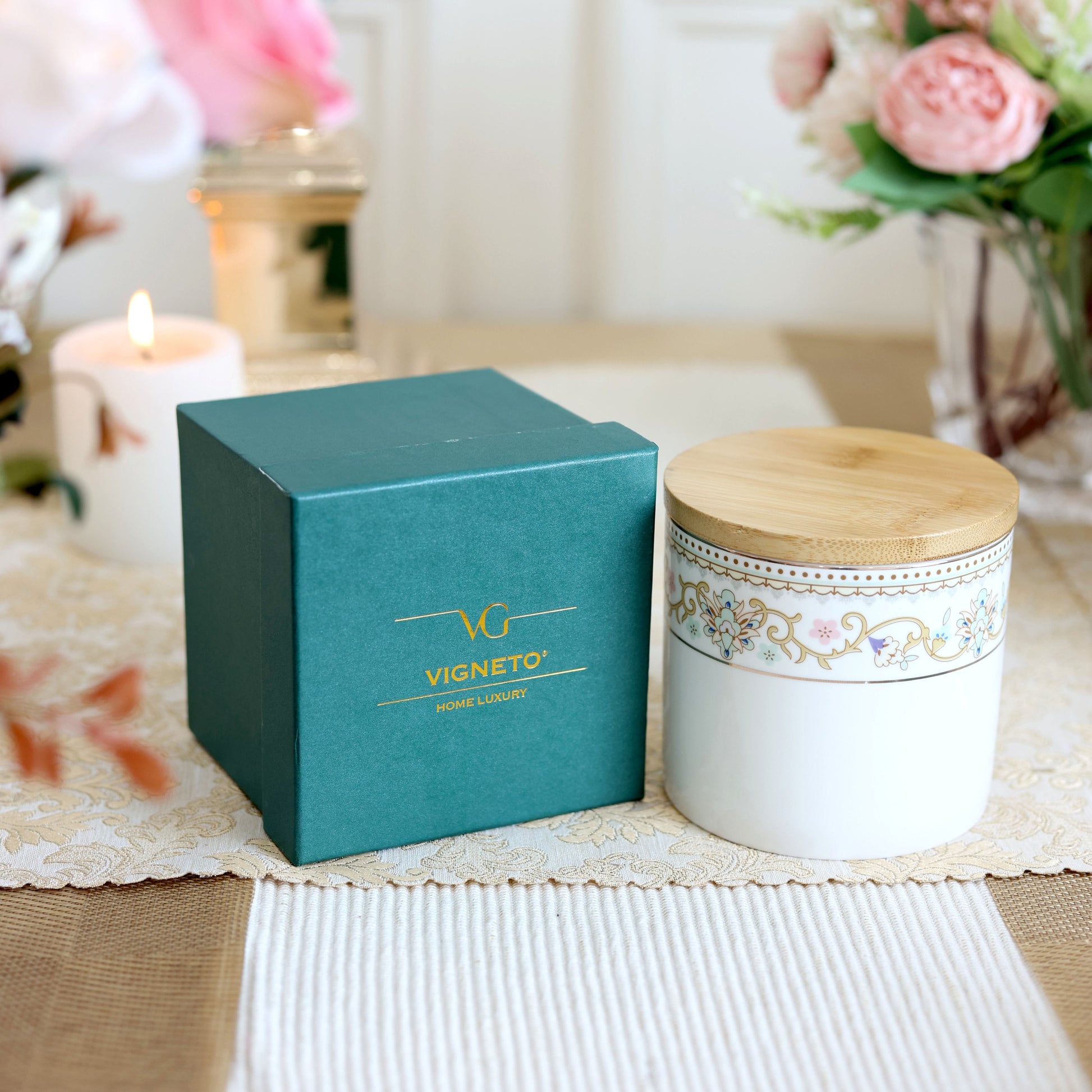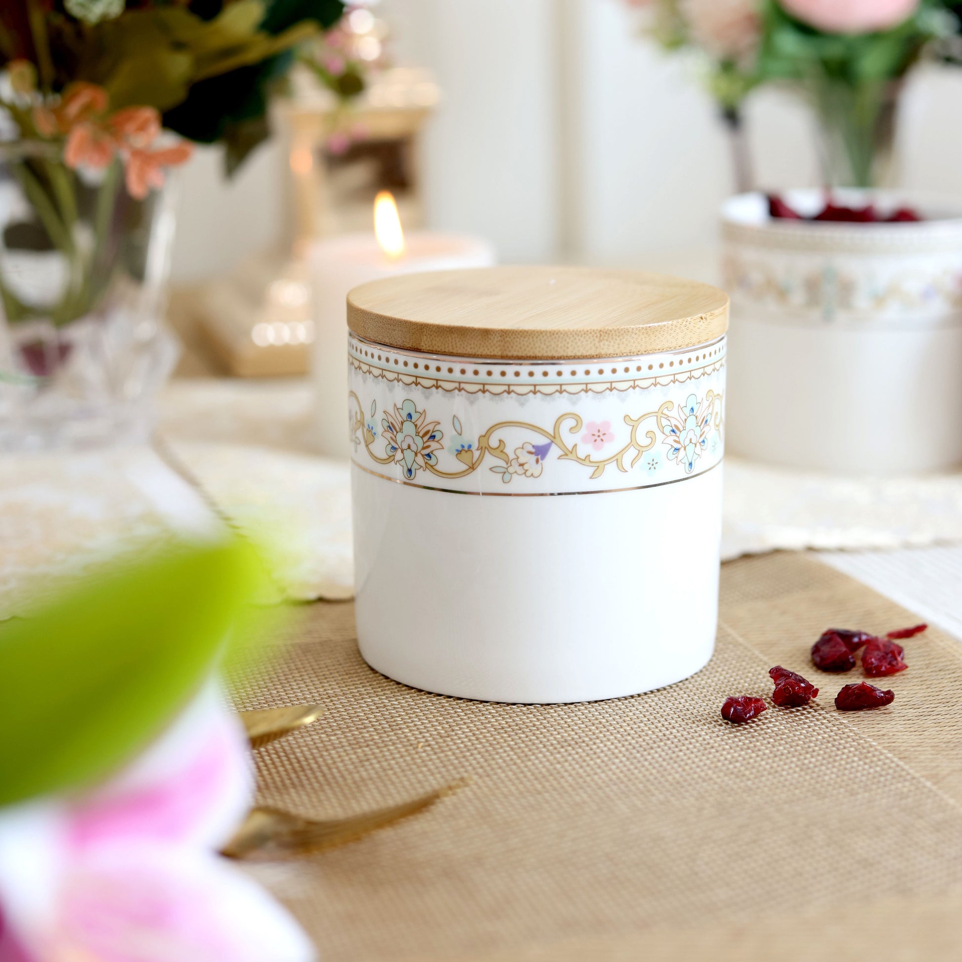 Pastel design and gold accents on high quality porcelain canister for storing food or gifting. Stylish yet functional, the canister is a must have for adding elegance to your everyday routine.
